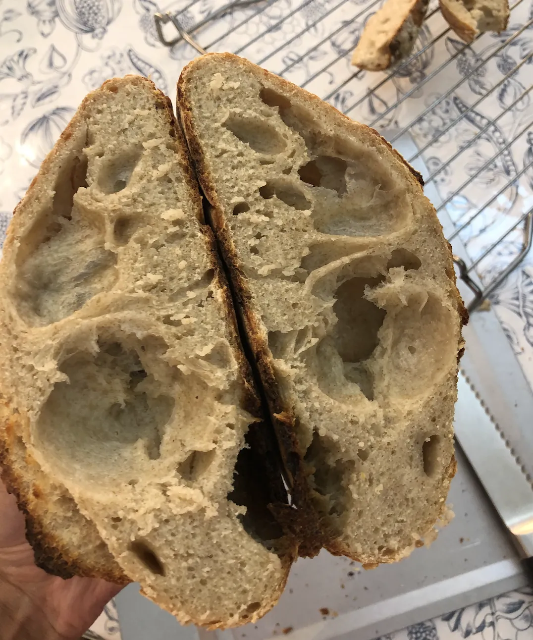 Hi! This is my first leaven sourdough, I made 2 using commercial yeast. I followed Chef Billy Parisi on YouTube. 5 folds, and kept overnight in the fridge. Baked for 30 mins coved, five mins without a lid ( gas oven super hot). So what went wrong?