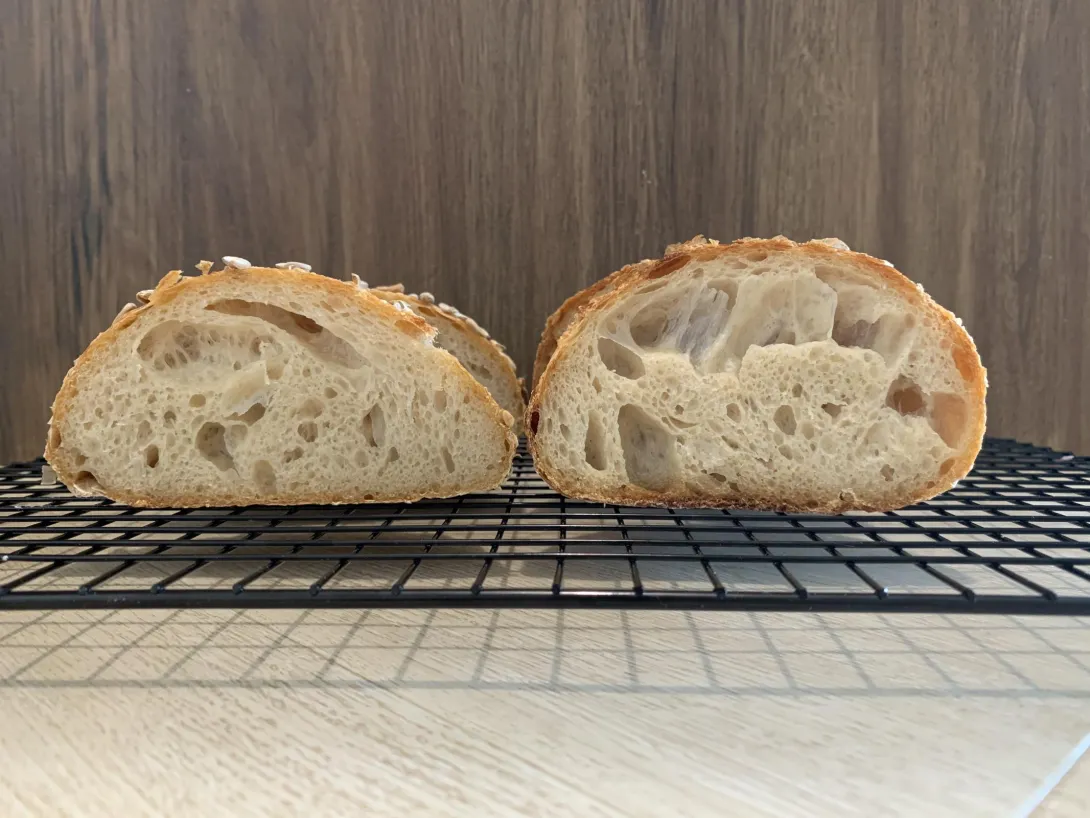 The loaf with seed (left): 40% bulk