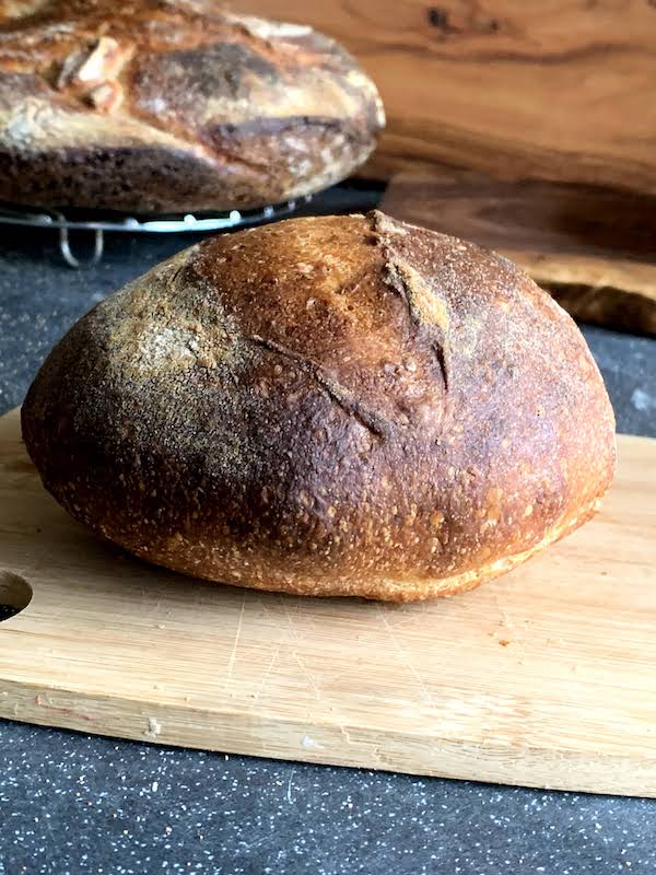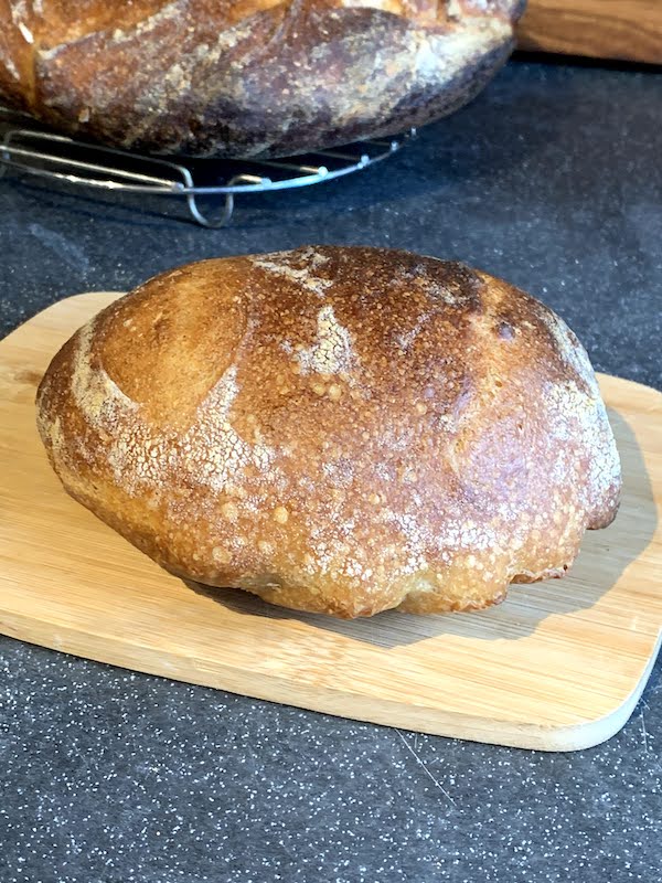 And the complete loaf, we see also it didn't hold it's shape as well, and there is less oven spring: