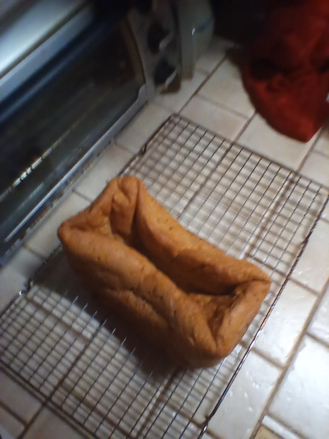 I would say a lack of focus. Pan loaves will collapse inward on the side if they are not baked long enough but this is beyond that and into soufflé territory. It would make a nice bowl for beef stew.