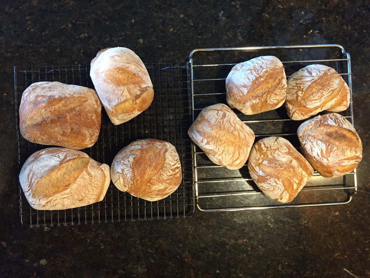 It's interesting to maintain a consistent shape with a dough so "fragile" that has a significantly lower hydration than most ciabatte. Maybe next time they'll be cut into loaves rather than rolls.