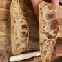 I just made two loaves of 75% hydration ciabatta ('King Arthur Flour Rustic Italian Ciabatta' recipe). One came out nicely. The other looked like pita bread, with a giant air pocked under the crust and no inner crumb. These were part of the same batch, so everything should be the same, with the exception of the bad (pita) loaf proofed an additional 25min while the first was baking. Could this additional proofing time cause this (over proofed)? I had read some other posts about lack of gluten development causing similar issues, but that didn't seem to apply here, as the first loaf was fine. Photos of the 'good' and 'bad' loaves. Any suggestions?