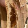 I agree with Ciabatta, they are overproofed with the disconnected upper crust one much more so. The gluten became broken down and weakened and no longer able to hold in the gases as the proteolytic enzymes broke down the gluten network causing the expanding air pockets to coalesce. If you have two to bake and can only do one at a time, I would keep the second one in the fridge while the first bakes so it doesn’t continue fermenting and become overproofed.