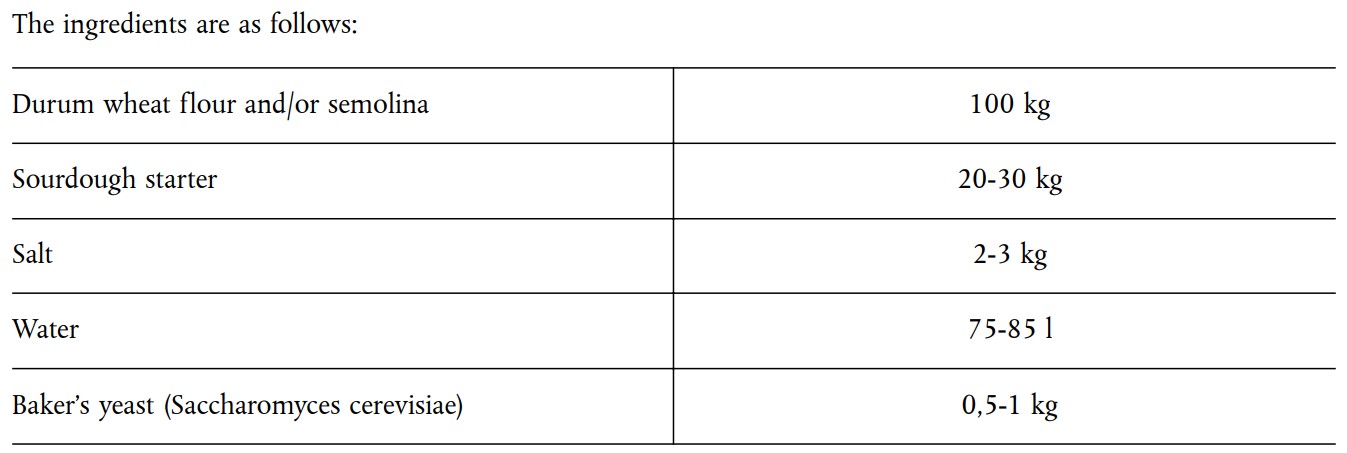 In the document the procedure is detailed in a rather complicated way. But like pane di Altamura the sourdough is a 3 times refreshed old dough.
