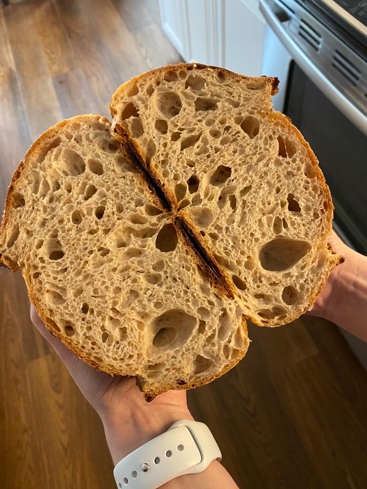 Recipe is about 78% hydration. Using a mix of Central Milling's High Mountain and Whole Wheat.
