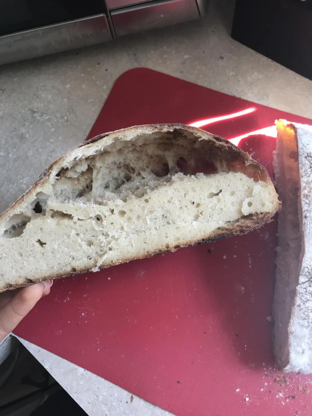 I recently baked a loaf of sourdough, and ended up with this large air pocket! I’m wondering what may have gone wrong? Overproofed? Underproofed?