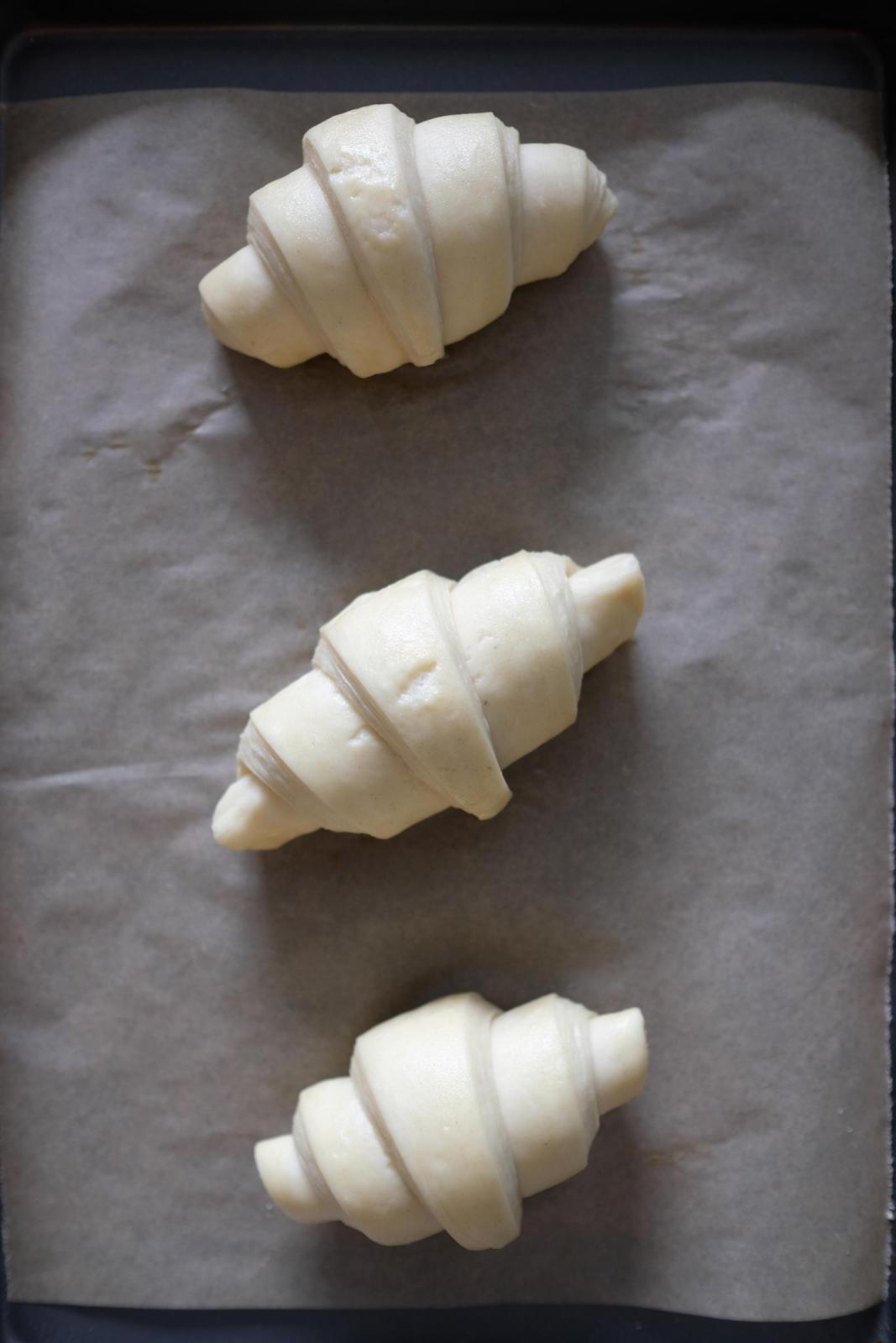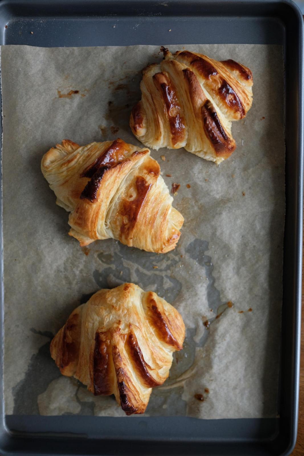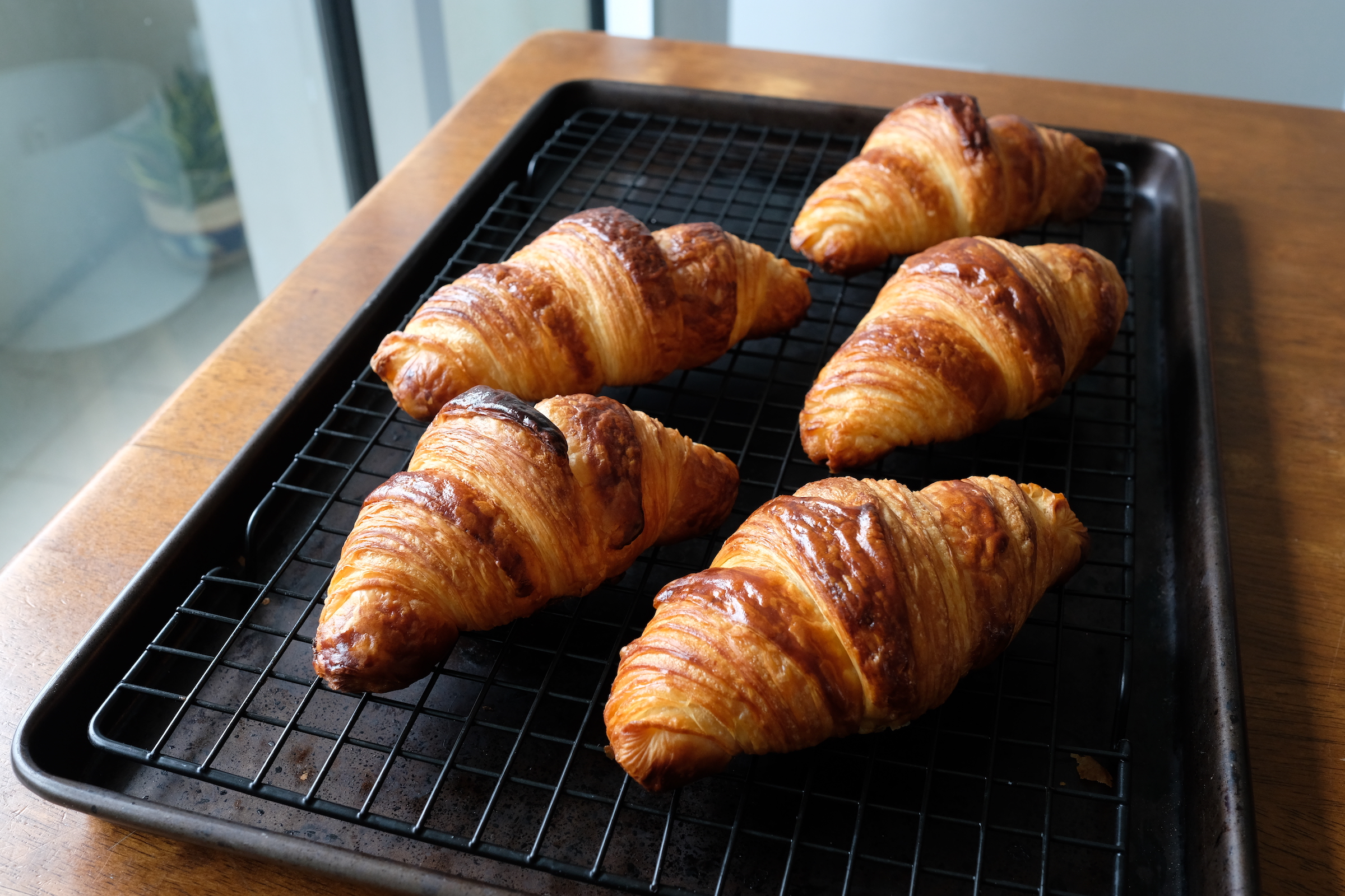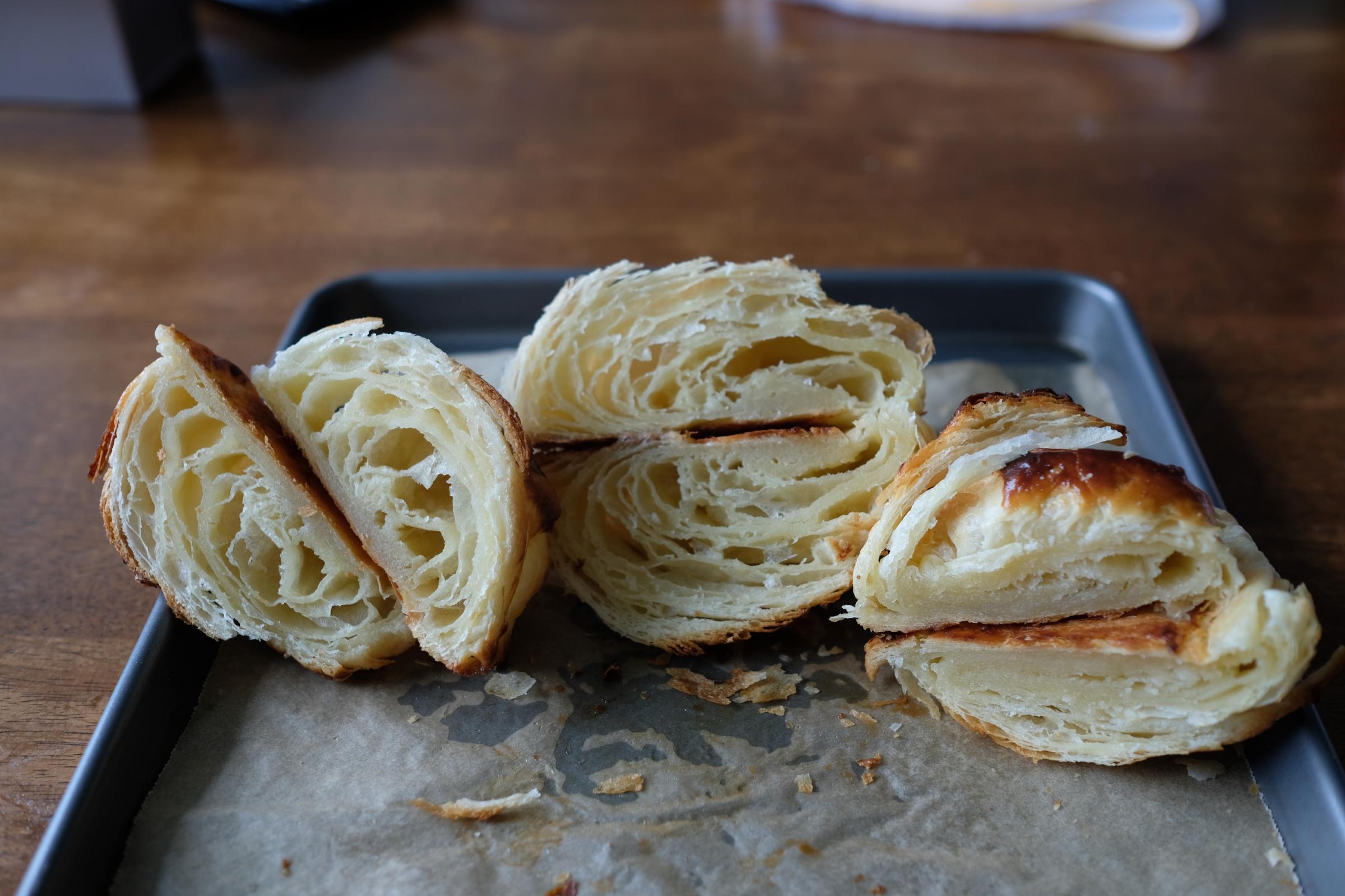 It took me 18 times to finally nail the lamination. Lately i tried to refrigerate the dough after the last fold, shape and proof the croissants the next morning. But then something went wrong. The top layer was tore apart during proofing. I continued to proof them for around 4 hours until they were all fat and jiggly. I kept my finger crossed but it was a disaster in the oven. I baked them in a conventional oven at 385F/196C for 20 mins. They came out flat and soggy. The layers were broken and separated. The interior seemed undercook too. This has never happened before.
