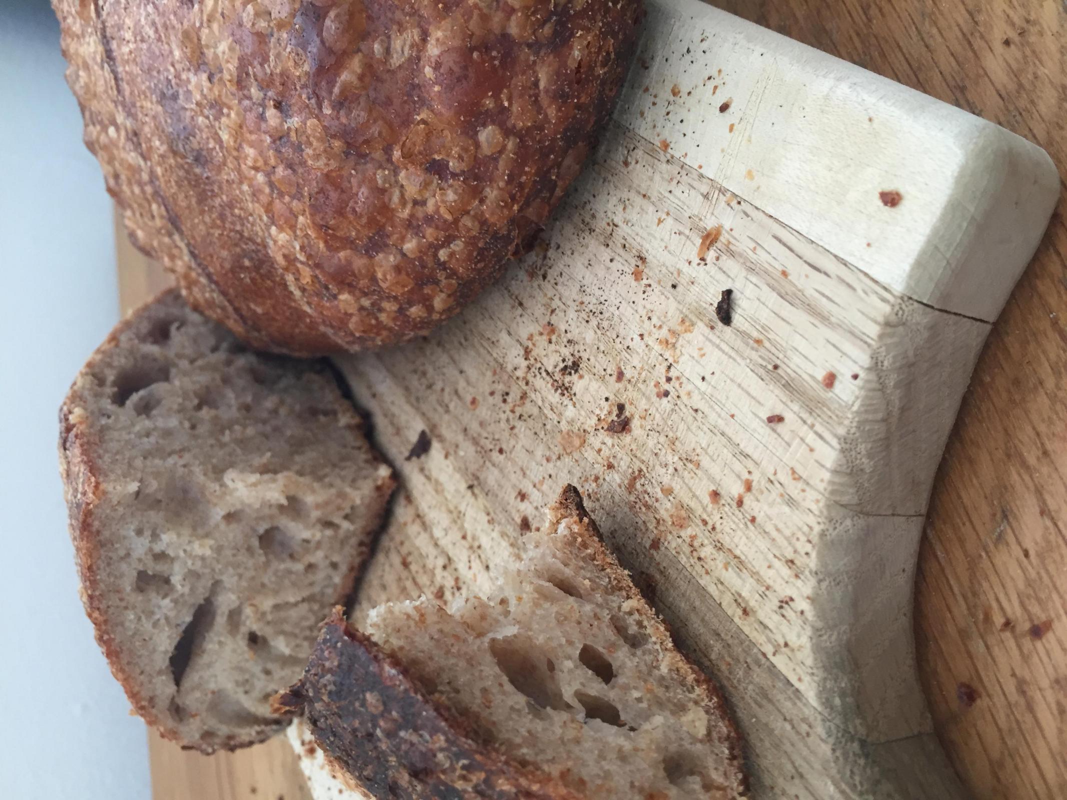 The loaves actually turned out quite okay for new starter, first bake, and first go at high hydration.
