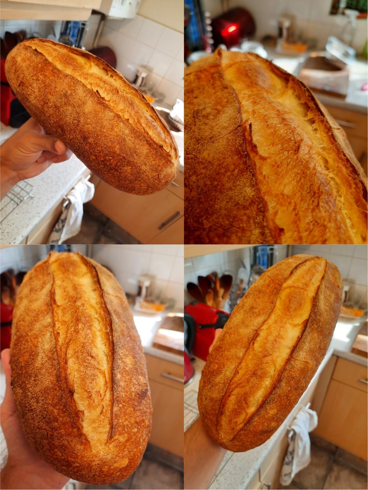 refreshed 1:1 (old-dough:flour) + enough water to make a firm dough.