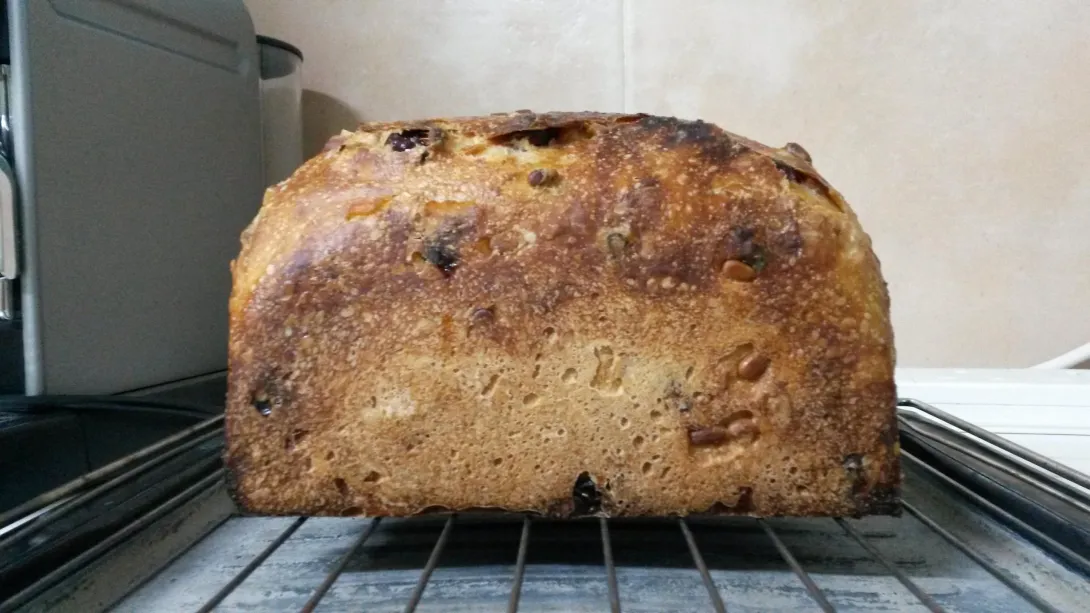 Final dough is quite quick to put together. 16% wholegrain and with a hydration similar to the stiff levain. The whole process takes 1 hour 40 min. The plain sourdough alone is bursting with flavour and I've done it a few times without any add-ins. This time I decided to add pine nuts and cranberries. Once the dough is done it's refrigerated, before shaping, for a further 15 hours.