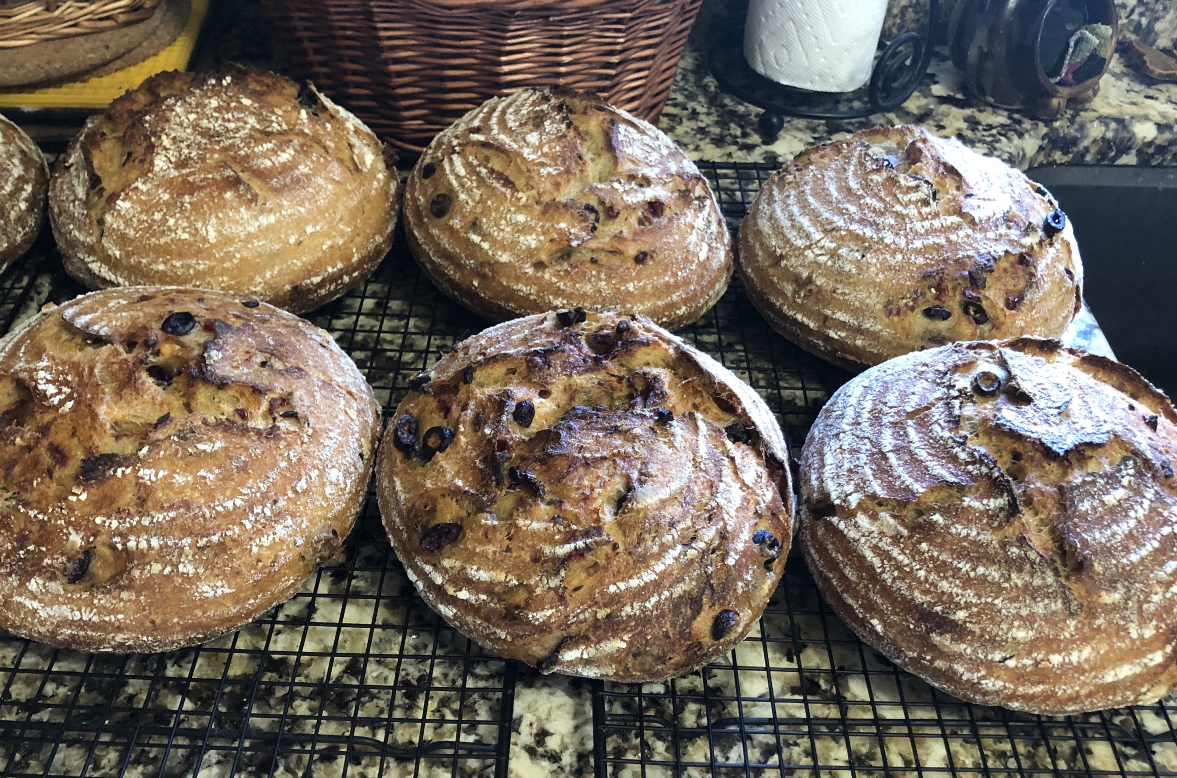 That ended up with an awful lot of the add-ins. It was just the one batch thank goodness. It is definitely an interesting way to develop the gluten. I’m not sure that I’m going to continue though as I’m going to go back to doing a true autolyse and then adding the salt, yogurt and levain in the mixer. I might as well put the add-in at the end of that as well. Less of a mess.