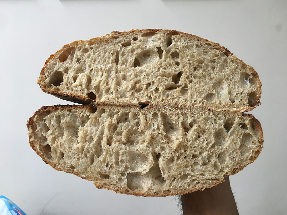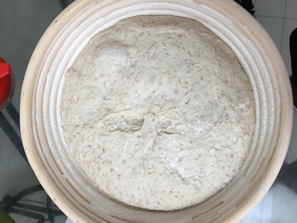 Total bulk ferment time: 4hrs if counted from mixing the salt or 4.5hrs from mixing the levain. I read somewhere that bulk ferment starts after mixing the salt and others said that it starts after mixing the levain. Ambient temperature during bulk fermentation was 24-25C and final dough temperature was 27C.