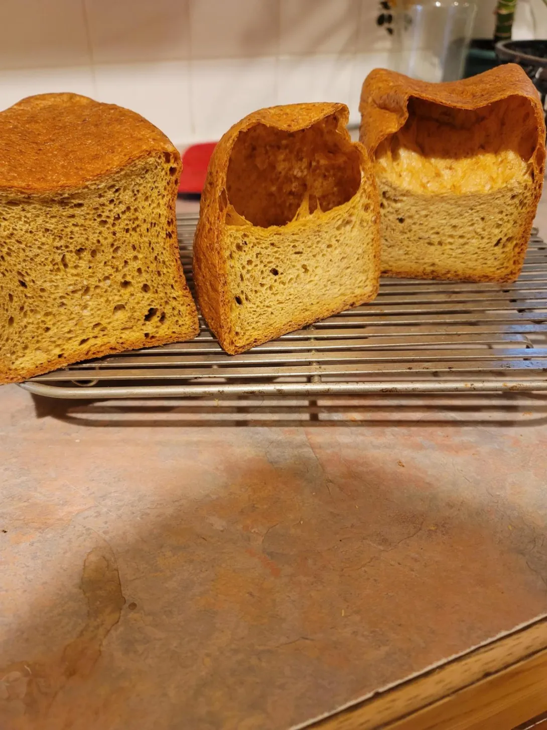 After you guys and gals answered my collapse issue, I haven't had a loaf collapse on me since! So thank yall for that... I do have another issue that happens every once in a great while, these hollow spots on the end of the loaf. As you can tell by the picture, the middle is a nice square. This typically only happens when I make my bread Pullman style.