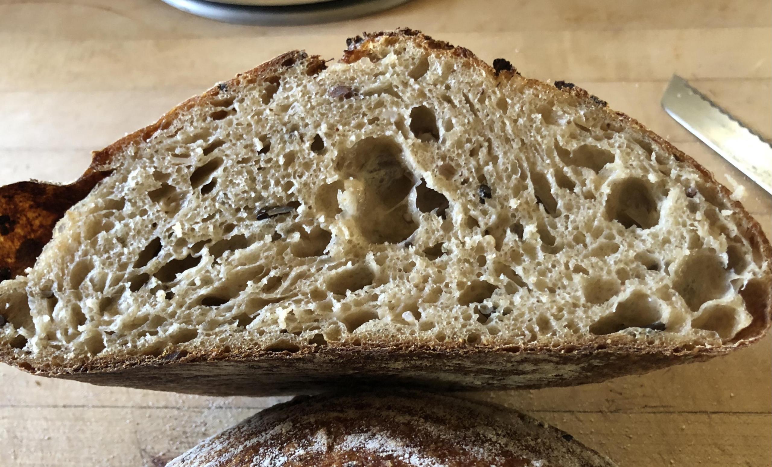 This smells like deep fried onion rings when you are making it! I decided to try my old method of levain builds to see if I got more activity that way, but I found that although it rose the same height, it seemed less active during the builds. Bulk was about the same.