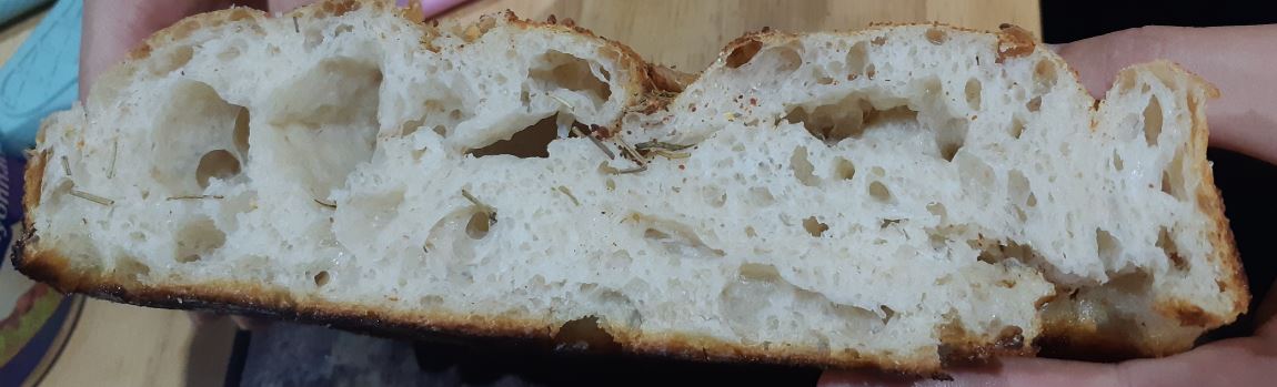 My wife and I are brand new to sourdough and began our first starter 5 days ago. We read about someone who made their own sourdough focaccia with a 6 day old starter, so we decided to have some fun and try with our 5 day old starter. Our started doubled in size during the bulk fermenting in about 5 hours. After we moved it to the pan, it proofed until it filled the pan in only 2 hours. We baked it at 425 degrees F (220 C). Does anyone know why it rose so much? Shouldn't it be flat? Thanks!