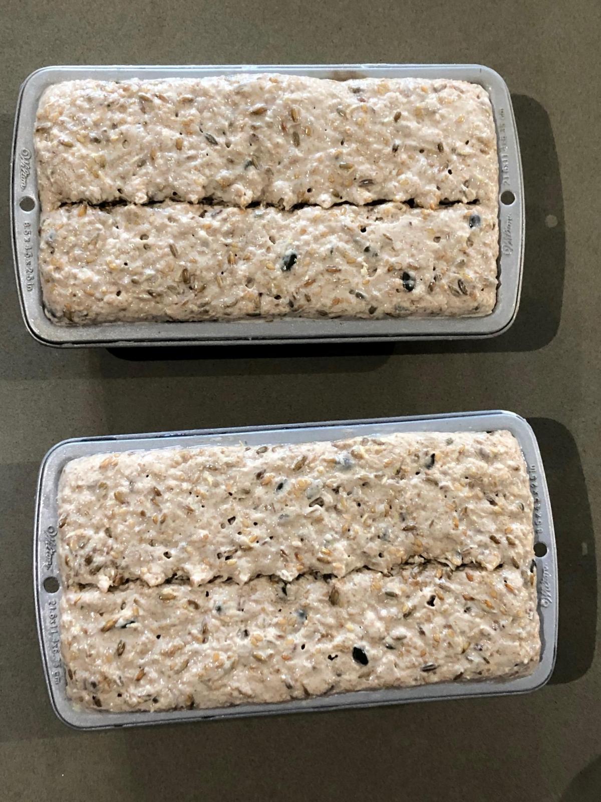 I ended up having a bit more dough than could fill my two pans. I should have made a third smaller pan as they proofed beyond the pan's capacity.