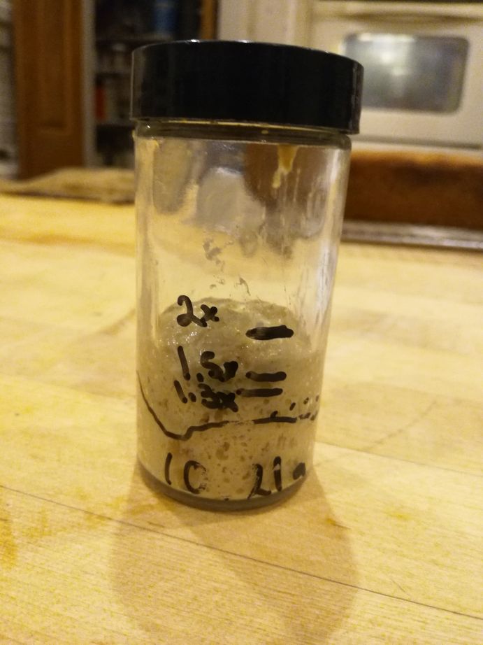 - 46g (9ish%) sourdough starter (50:50 hard red)