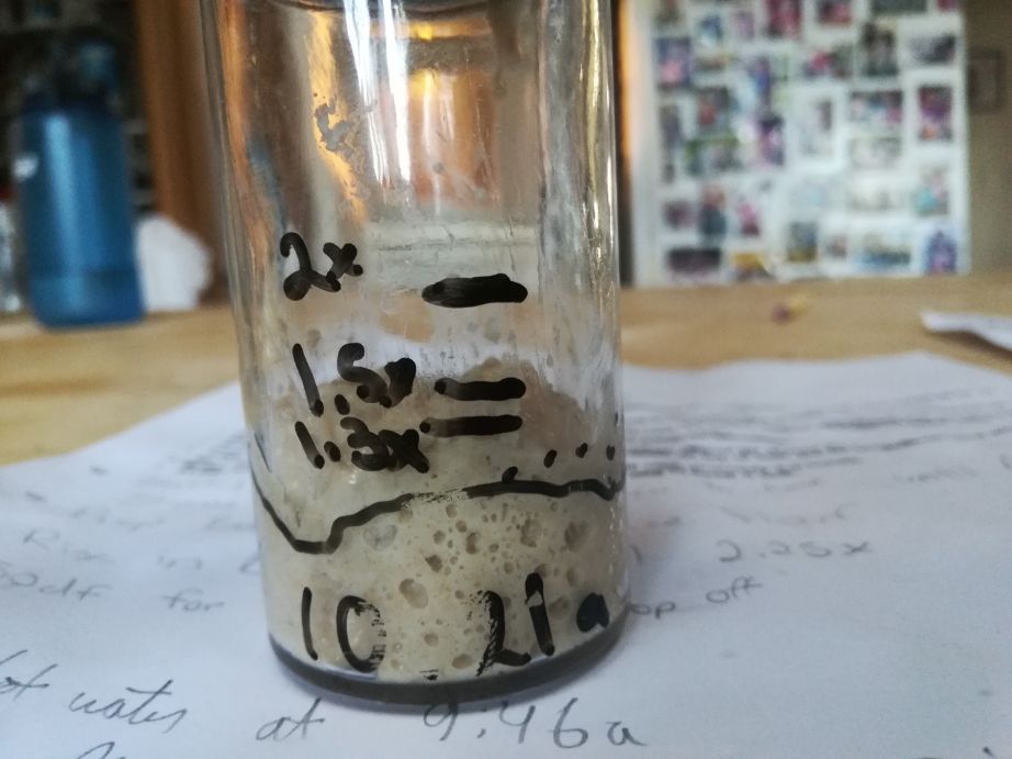 - Keep stretch and folding until aliquot shows 1.3x over original volume.