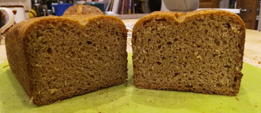 - The loaf's density was acceptable. I might have been able to get the loaf slightly less dense. But I think I am to the point now where if I try to squeeze out better rise results, it won't be the best use of my time.