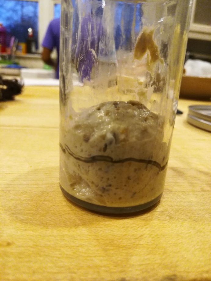 So, before adding the flour, I made some adjustments, I gave half of the mixture to the chickens, added back some water, honey, salt, and oil to get back to the desired ratio, and then proceeded to mix in the flour.