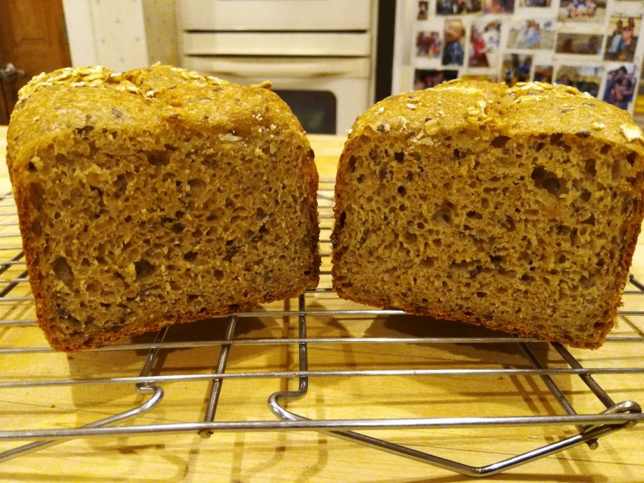 - The crumb was too gummy. I think this is probably due to too many starchy elements in the addins. I will try removing half of them (probably just remove all of the chia seeds).