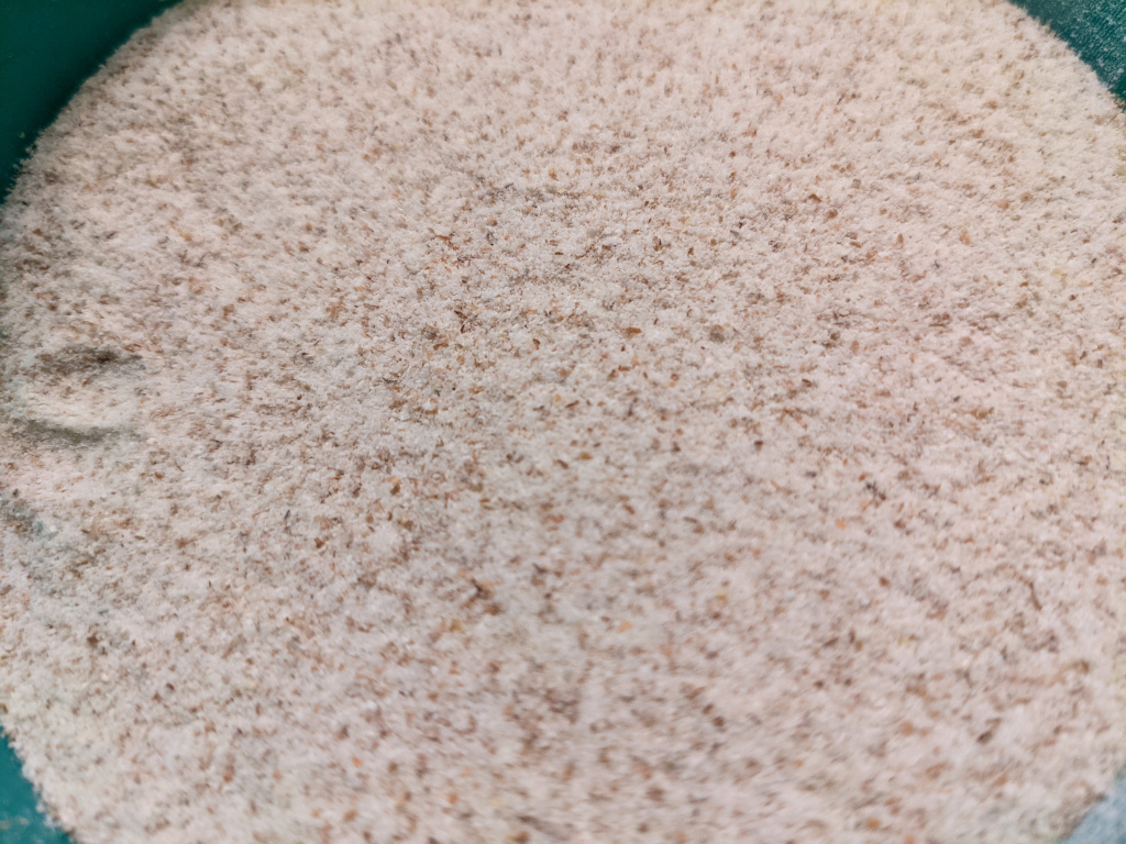 I have a 20holes/inch mesh. The coarse particles are then ground finely in a spice grinder (35sec?). See-