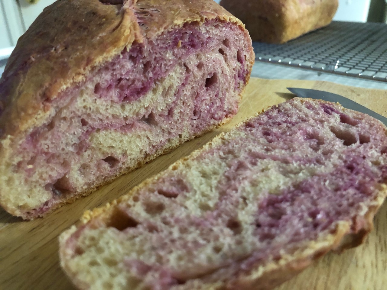 Yes, I enjoyed the bread very much and I was very happy with the baking. I am so thankful you shared this. This morning I toasted the bread and used a little mountain blackberry jam, flavor was amazing! The bread is still moist and delicious today! I have two tiny slices left, I don't know they will make to dinner. I highly recommend everyone try this. Even if you can't get a purple sweet potato, I think red or even an orange-red mix would be beautiful and tasty too!!