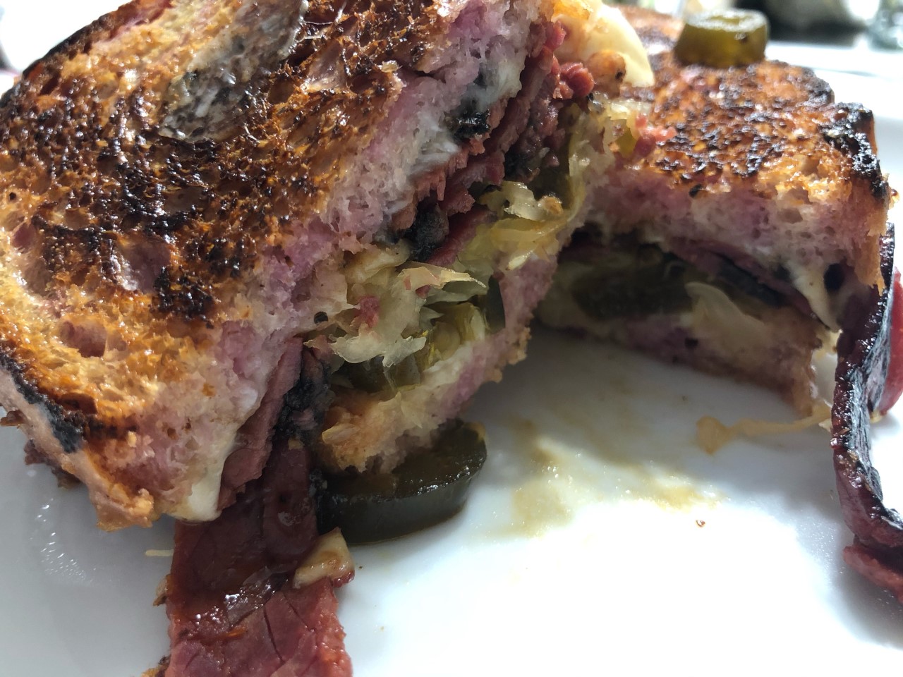 I recreated a sandwich from Buccee's (a Texas, USA gas station); BBQ pastrami, sauerkraut, candied jalapenos, and mozzarella with thousand island. (It wasn't black, just the picture) My head is still freaked out by BBQ sauce pastrami.