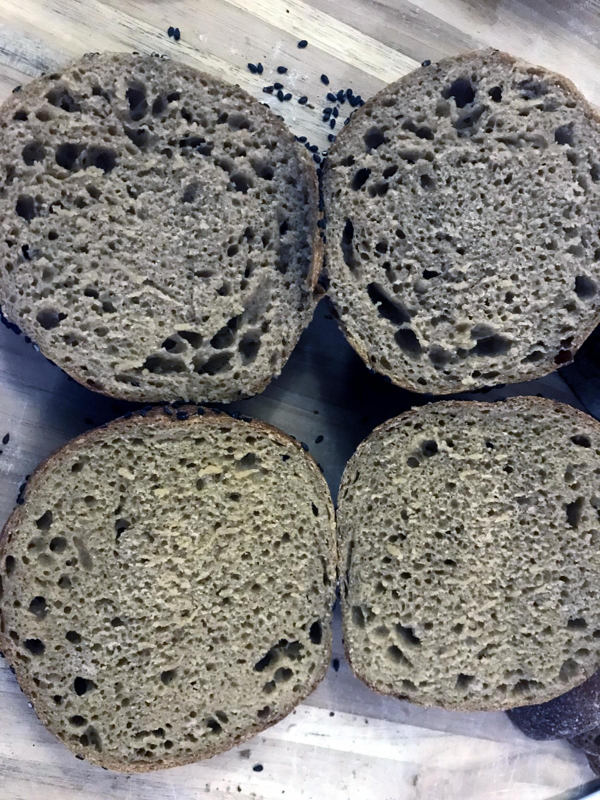 I made sesame buns from these mini test doughs. In the end they were very similar. The main takeaway was that 15% miso dough showed no signs of degradation for this duration and temperature, nor did it have any significant impact on flavor (w/ total sodium fixed for each dough). I can try increasing miso (will check your ratios), temperature, and using a scald to help feed it. I recently sifted bran from the wheat in a wheat + rye loaf after milling and made an overnight miso bran porridge (after a quick scale) in my makeshift incubator at a more aggressive 90 F using a mild chickpea miso. It showed signs of breaking down (whether it was the bran itself and/or attached endosperm or germ I don't know) and it created a very sweet flavor similar to the overnight miso oats. That part seemed promising, but it was an early CB and I had concerns it would cause problems in the dough, so I put it in the glaze from dmsnyder's recipe, which turned out not to be a good idea, as it couldn't stand up to the heat and ended up blackening the outside of the loaf. I can try adding this as a porridge, along the lines of your rice porridge sourdough to see how it behaves. Once I get the sakadane culture going I can try some experiments with that.