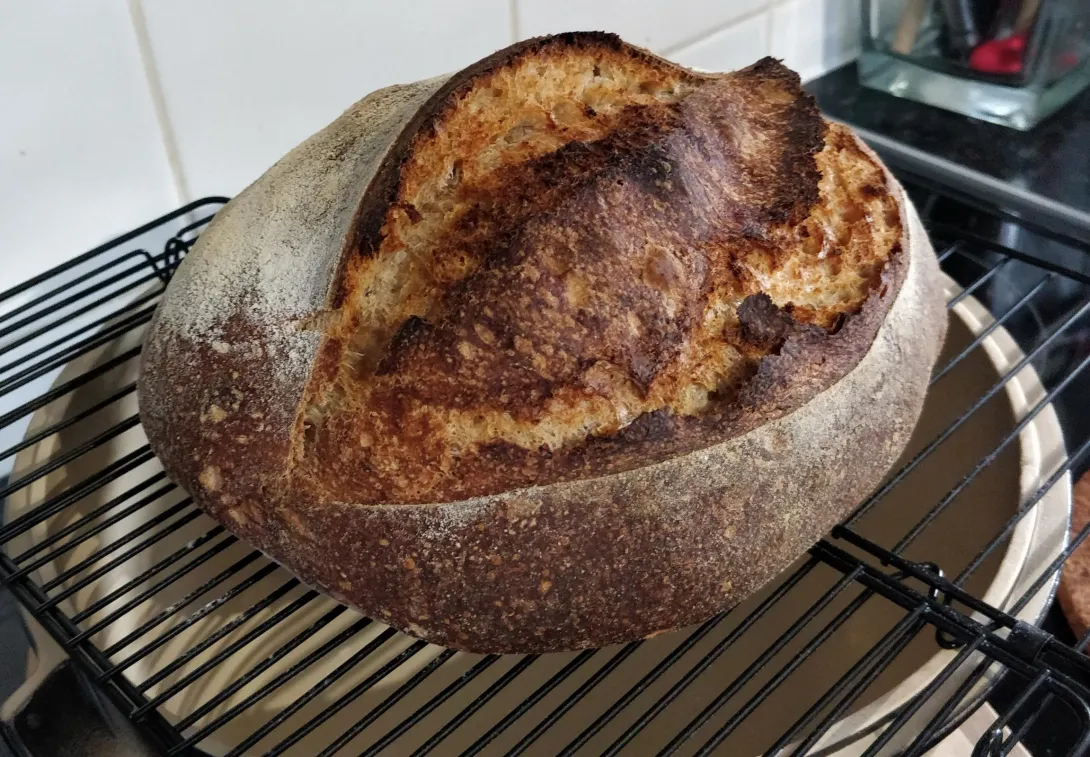 just baked my first loaf using my new Emile Henry bread baker and rather happy with the result.