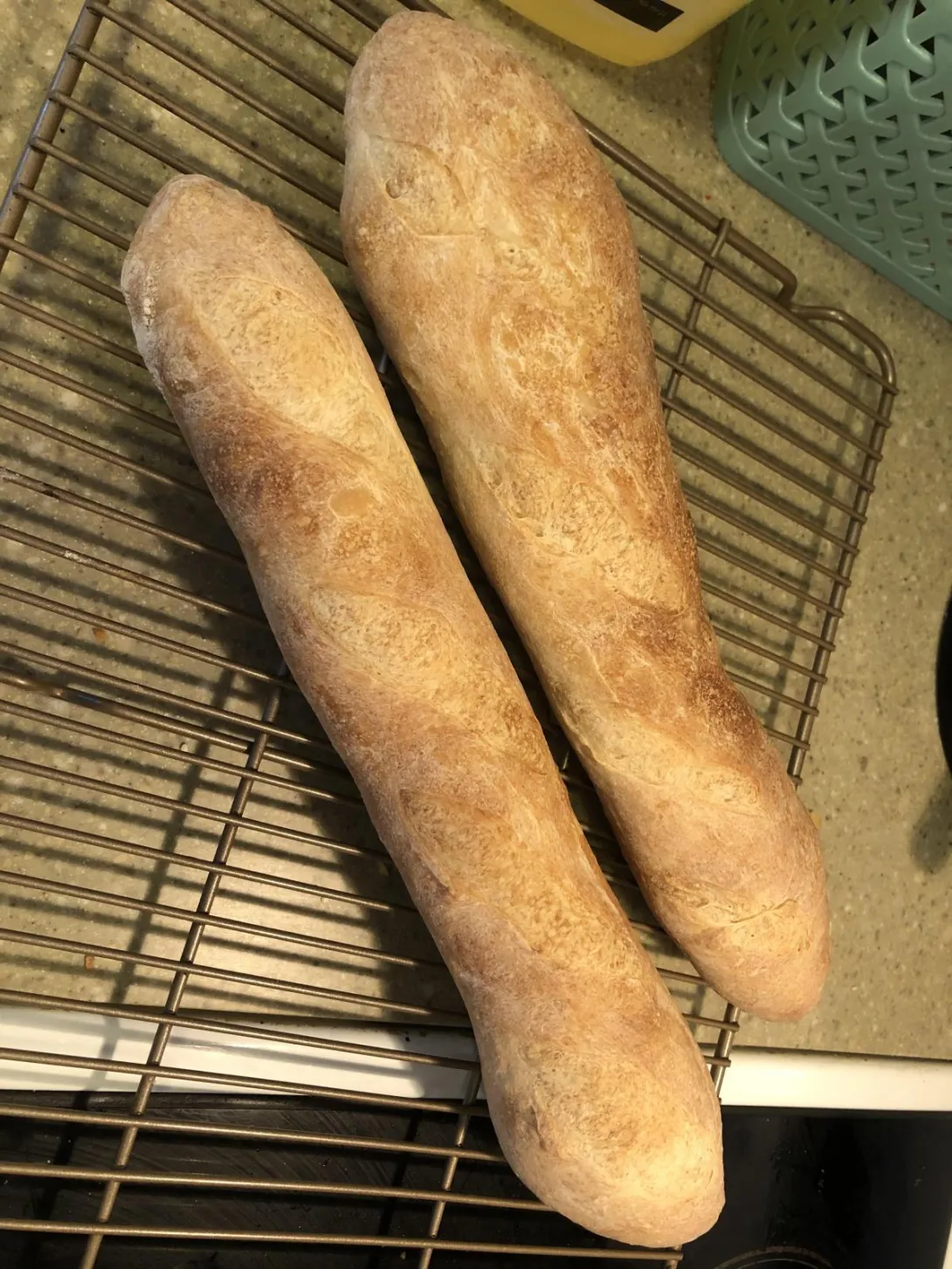 Hi everyone! So after much building up of courage I finally decided to try baguettes after my wife bought me a baking stone and... I have questions! First, I’m not sure if this is the best recipe to start with but I decided to give it a go using the French bread recipe from bread bakers apprentice. I know I made one mistake by forgetting to put my cast iron pan at the bottom for steam so I’ll have to remember that next time. I’ll just start with two questions I have and go from there. The first is, he says you can shape the dough using a lightly oiled counter. I tried that and I just couldn’t get the seams to stick together very well and the dough just stuck to my hand while trying to press the seams in. In fact the seams broke open on the bottom. Are there any good tips for getting the seams to stick together? Should I not use oil to prep them? My second question is, I tried to roll out the baguettes into longer cylinders but they just sort of stayed the same shape and got rather lopsided in the process. I tried watching a few videos but I’m still confused. My understanding is that you try to apply pressure while rocking back and forth but I couldn’t quite get it to lengthen very much :( any tips for that? Thanks all!