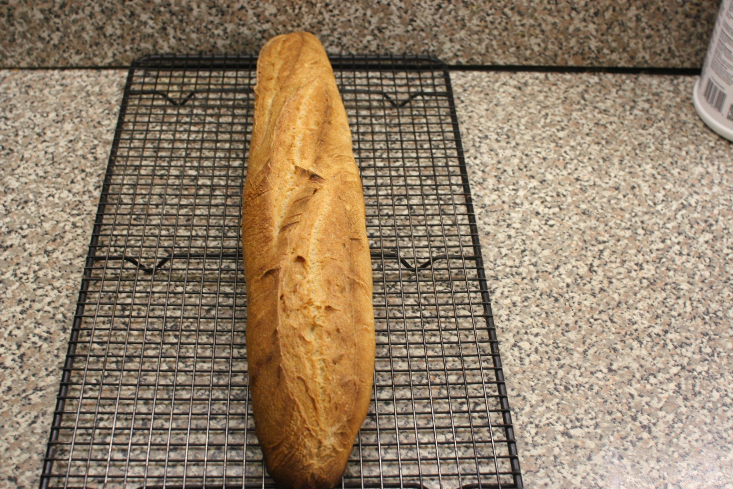 So it would have been a batard of about 900 g so keep in mind for baguettes the surface to mass ratio is higher so would drop in temperature more quickly. Also my dough was starting from fridge temperature after an overnight cold retard of 2 *C. The dough would be fairly frozen on the outside and pretty stiff. There would be crystals of ice on the banneton at the edges.