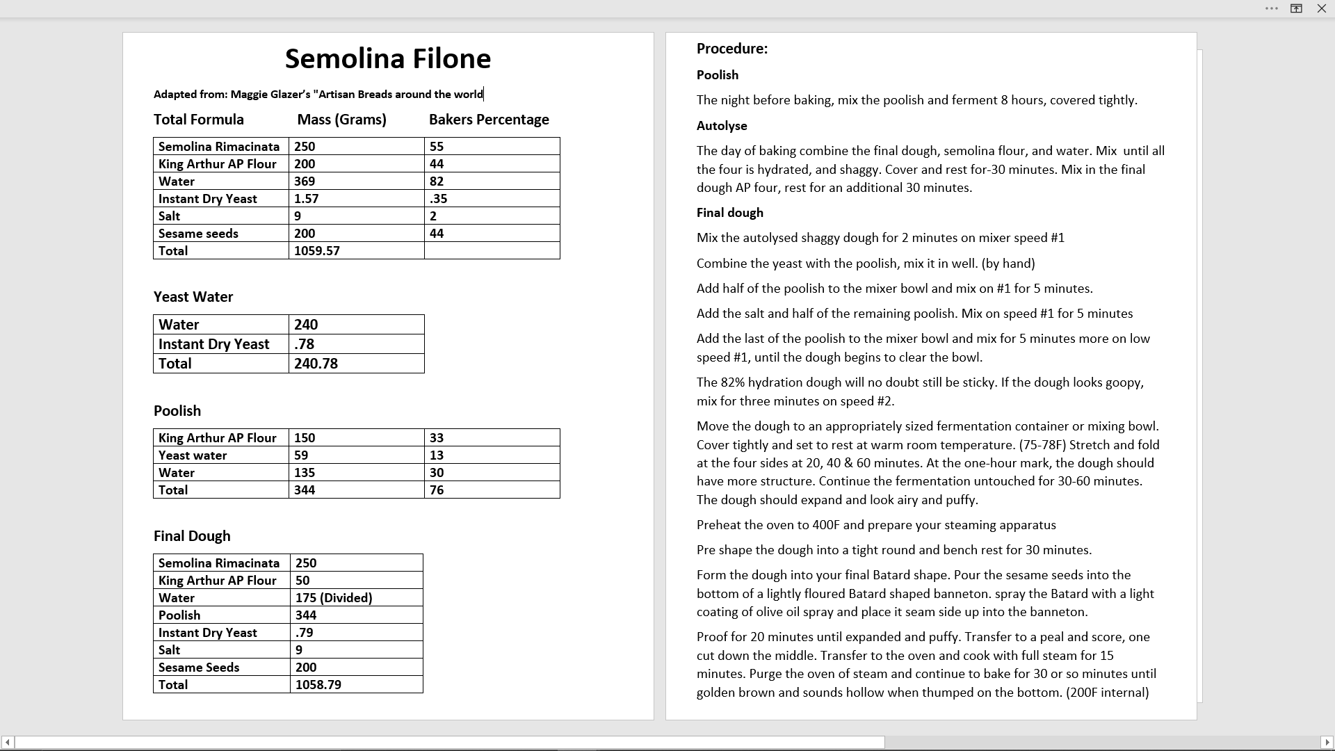 Before mixing the yeast water/poolish, I had to confirm I had the requisite amount of semolina. My last bake of 2020 will bleed into 2021. Happy New year!