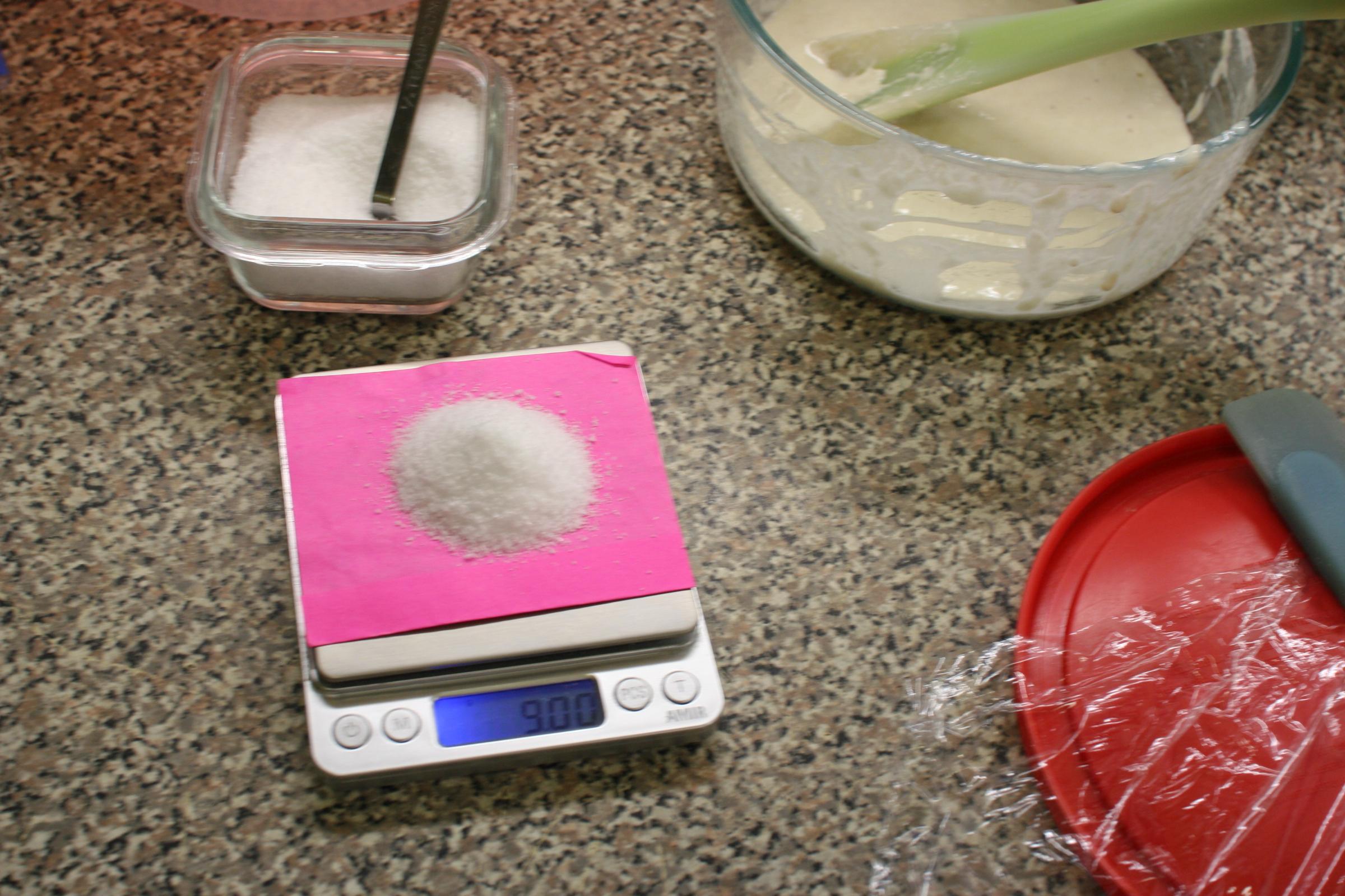 The salt is scaled before the second addition of liquid Levain.