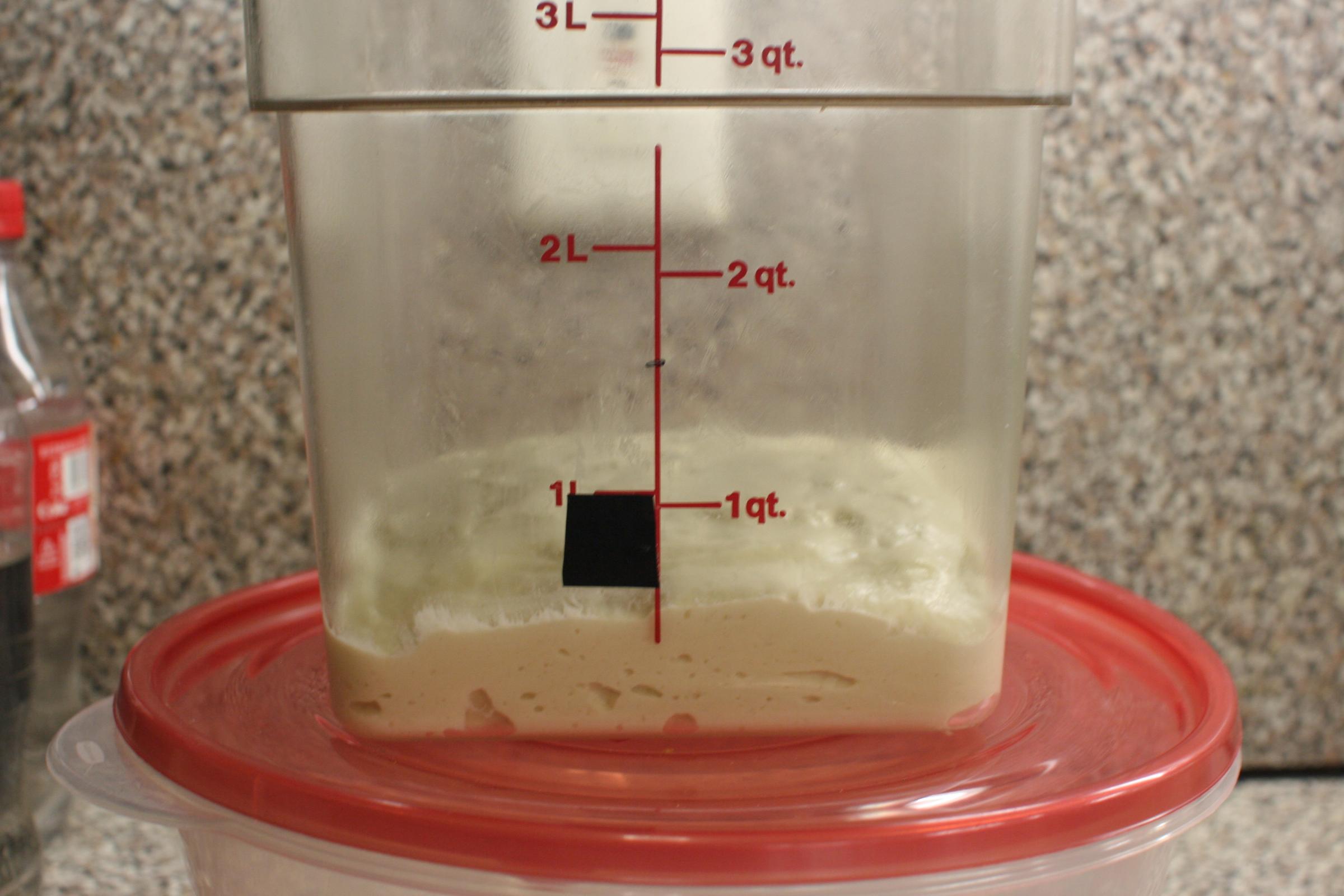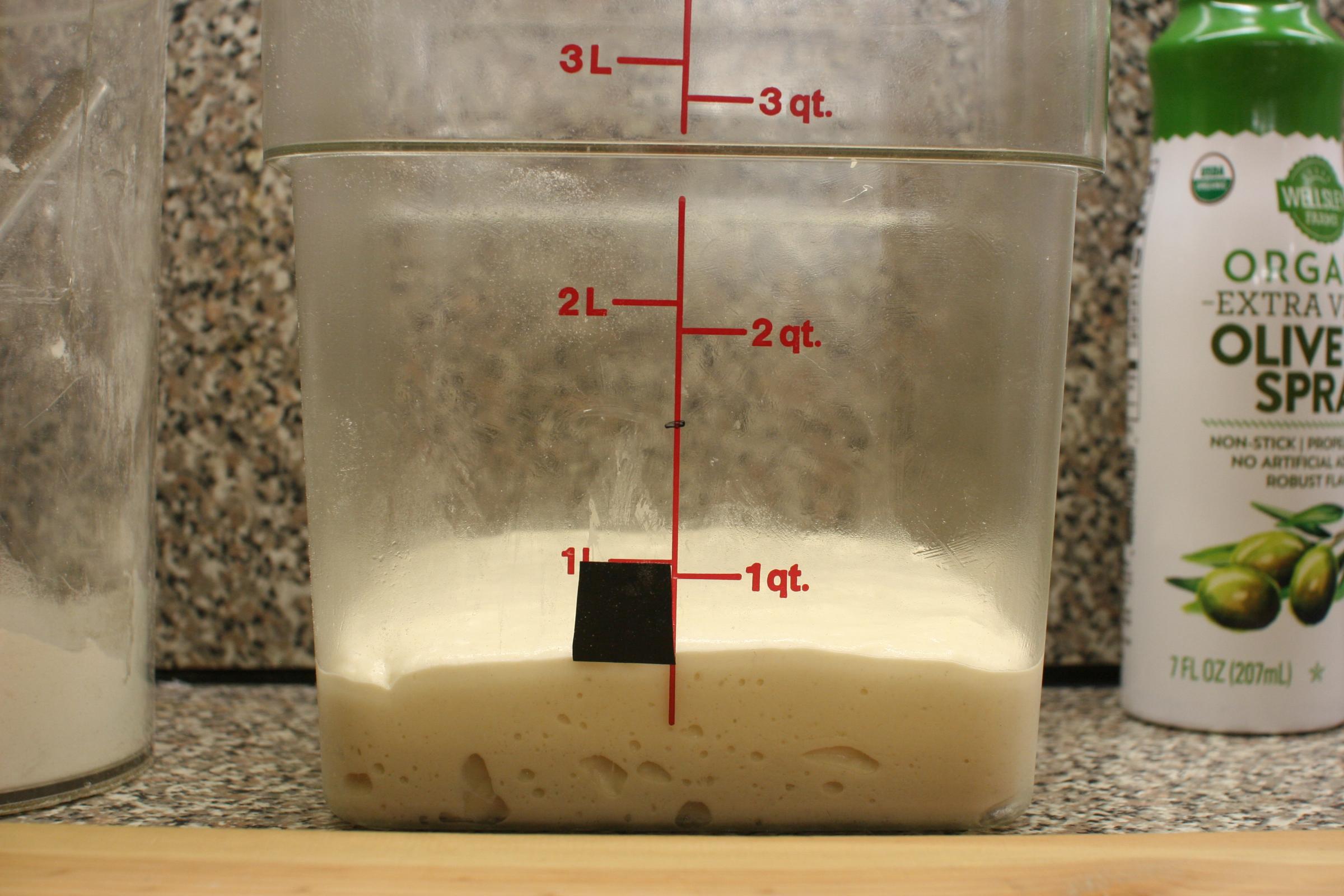 At approximately eleven hours of age, the liquid Levain is a very bubbly New Years' baby!