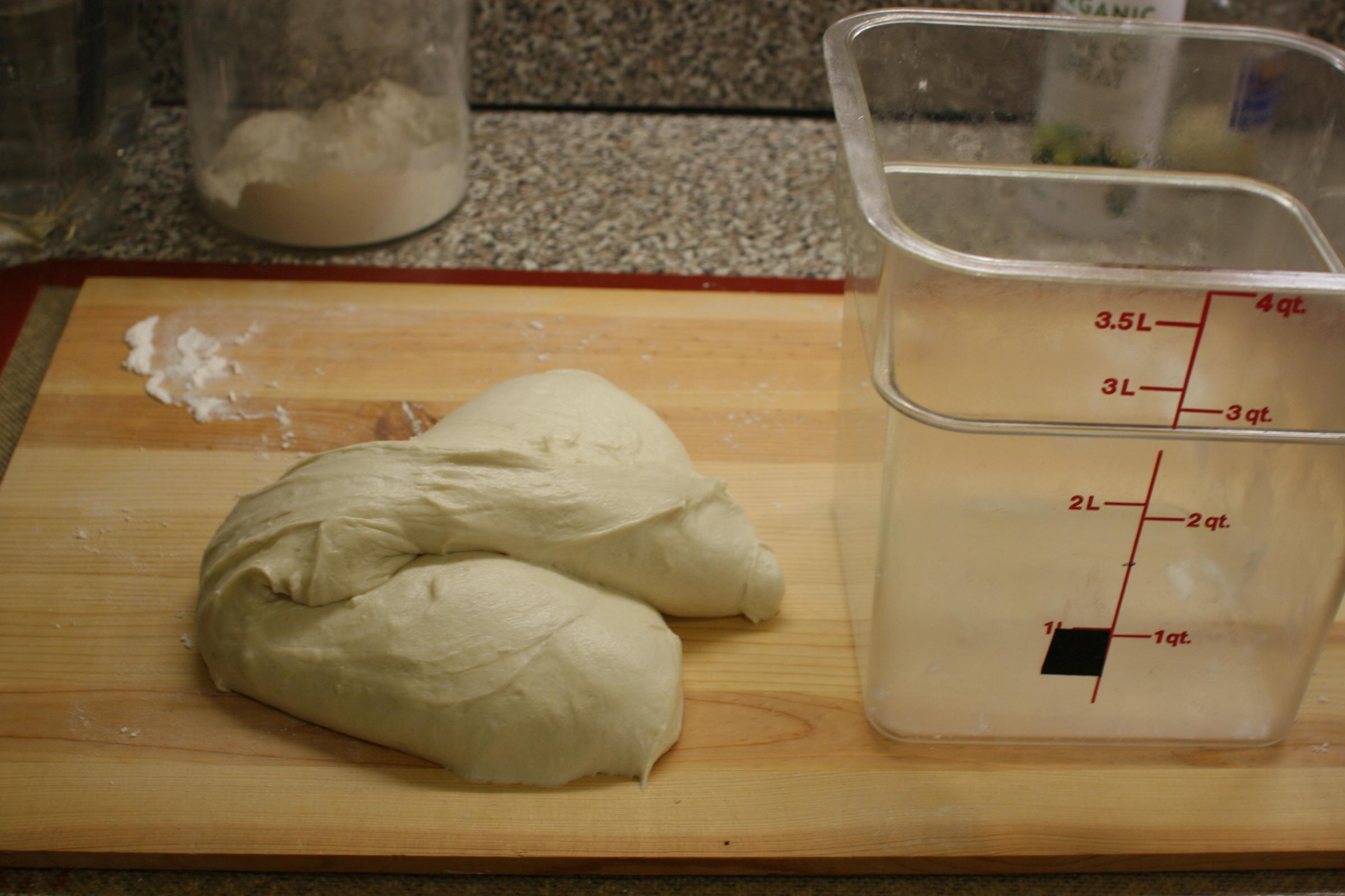 The dough ball is looking nice after the first levain addition.