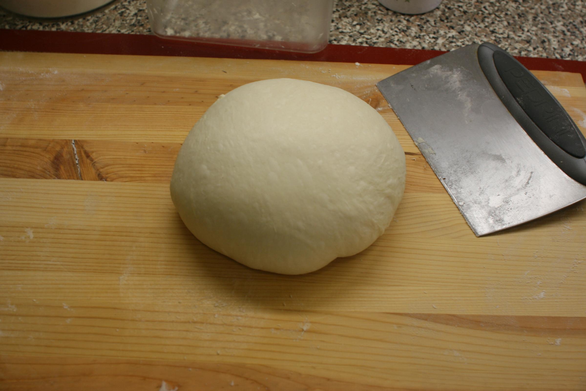 With just a small amount of bench flour, the dough ball is quite easy to pre-shape.