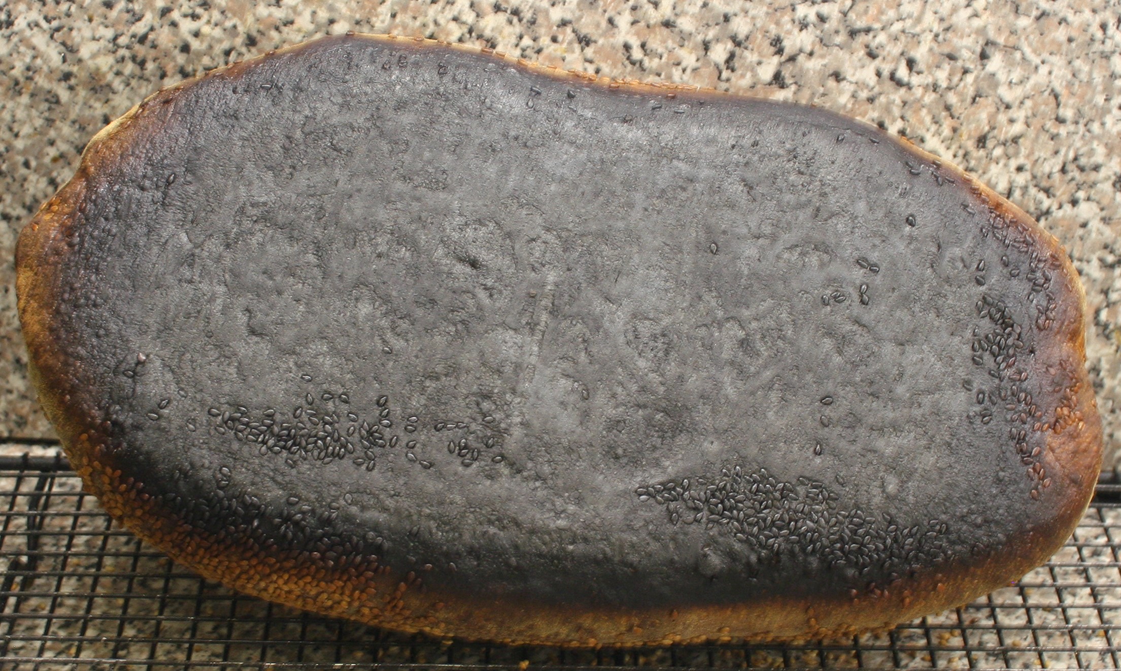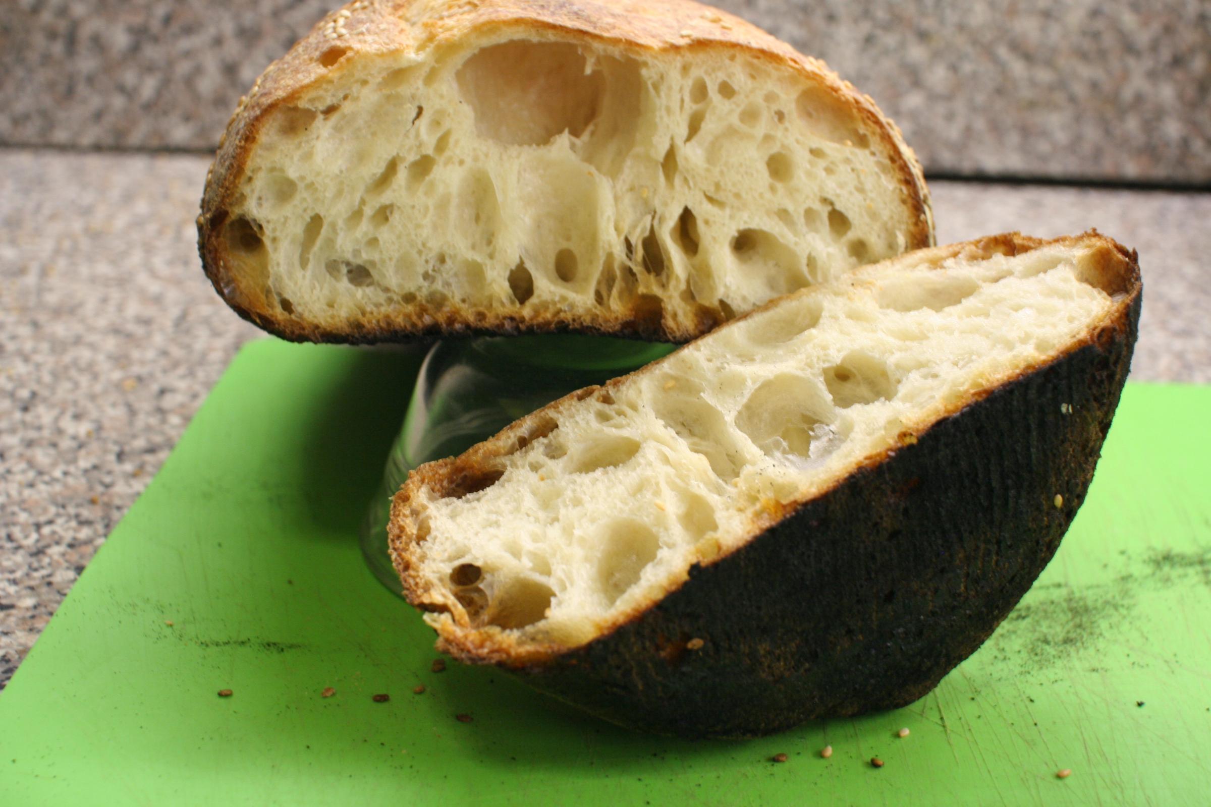 I have to admit, I am not really all that sad. Smile... Something about this durum wheat, I always have good luck with it! I must keep using it and hone my semolina expertese! I used a serrated edge knife and scraped off 80% of the burn.