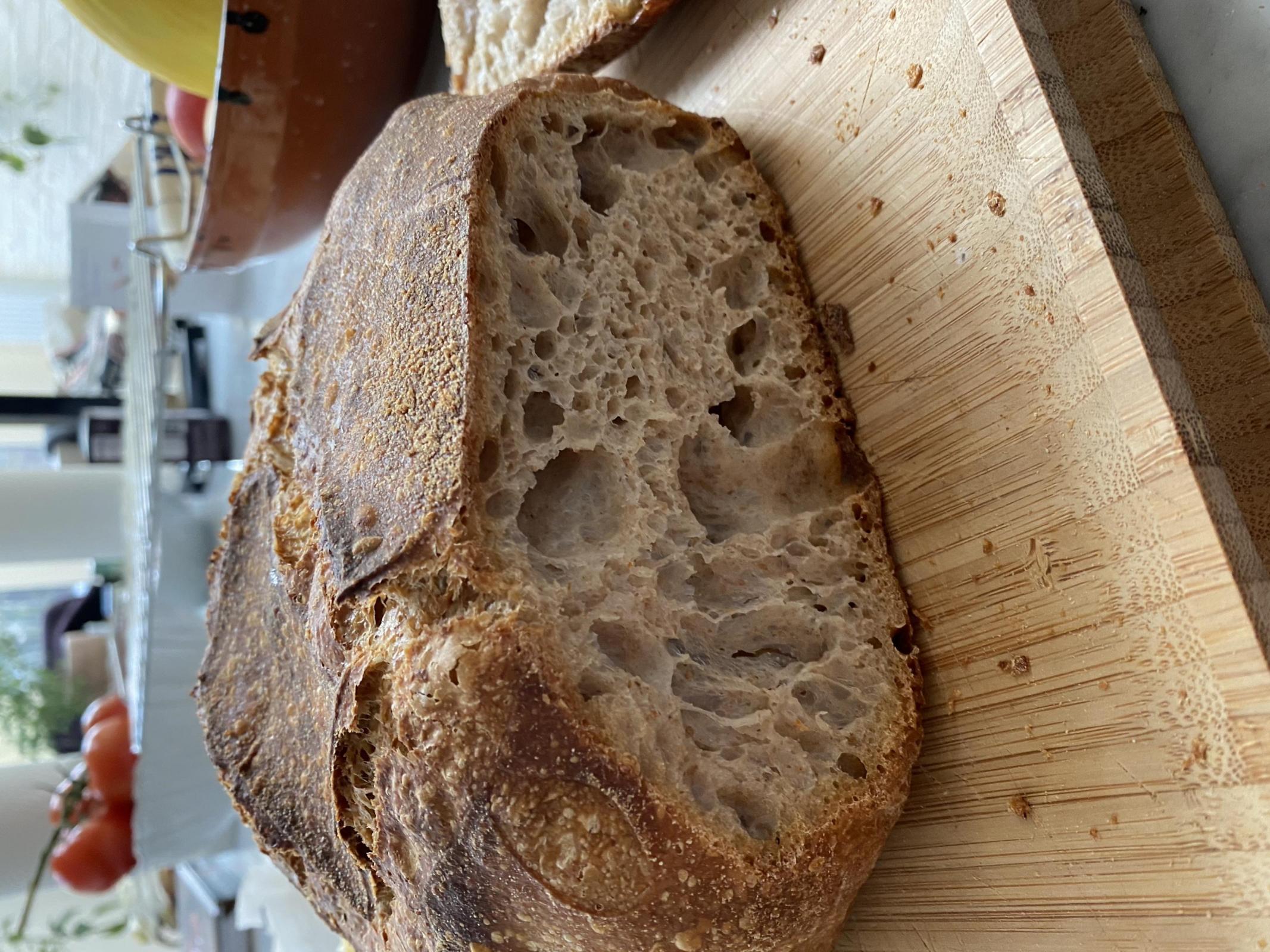 20% levain (overnight, 100% hydration - stoneground wholewheat flour + rye starter)