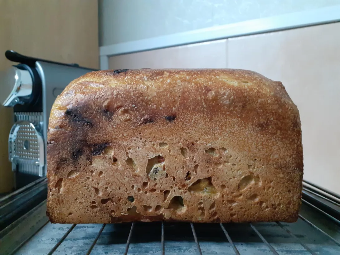 Absolutely delicious! Was an experiment and it worked a treat. Very happy with this bake. A multitude of flavours coming through from the toasted pumpkin seeds, goji berries, crystal rye malt and it’s sourdough to-boot. Will be right up there on my baking repertoire. This is gonna toast up well.