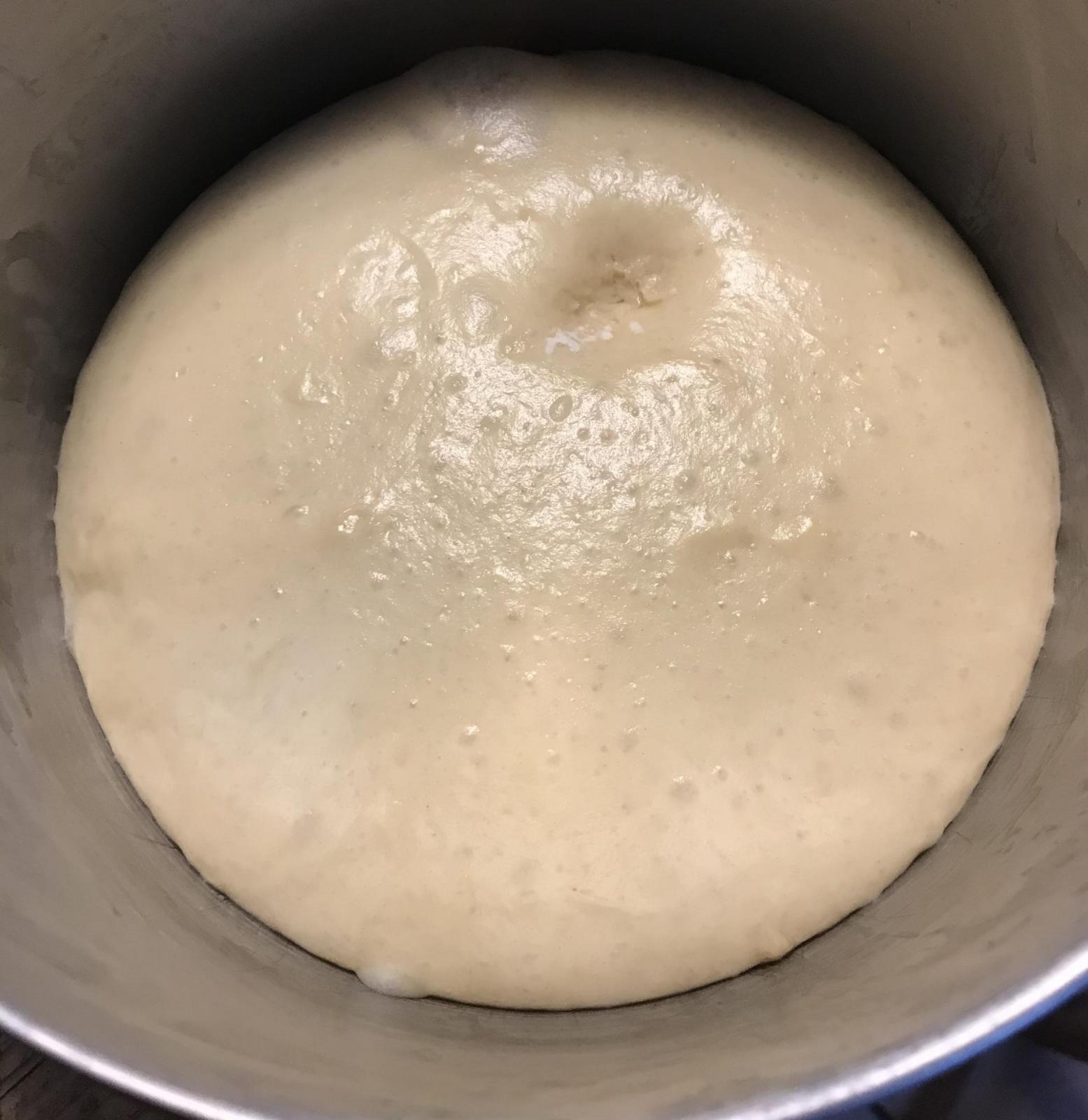 The first dough after fermenting over night.