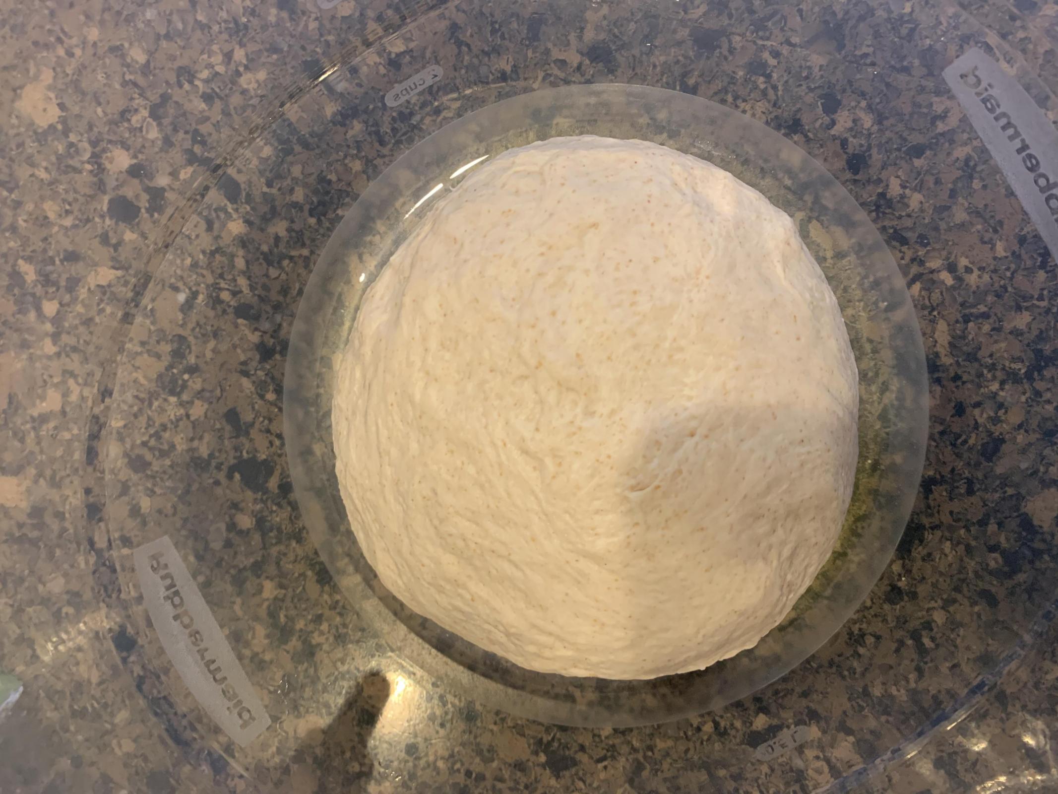 Maybe this will help... This is the dough after I did the hand kneading and put it back in the bowl.. After the slap and folds, the dough was supple and the surface was smooth. After the hand kneading, it had a "rough" surface.