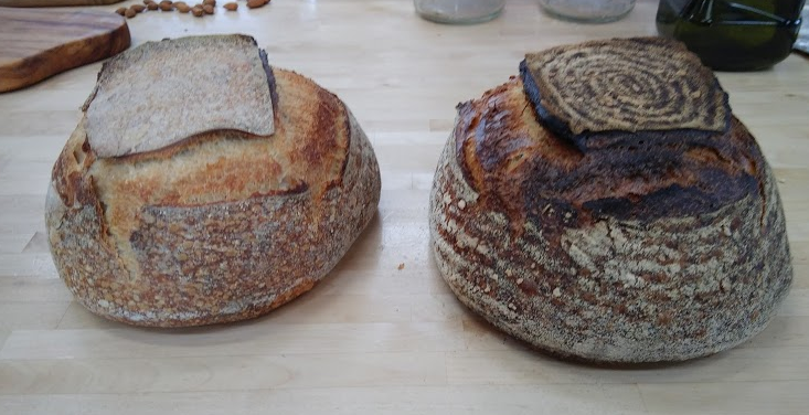 Last week I made a loaf for a friend (the lighter one). In the picture below, both loaves are the same weight. The one on the left was baked right from the fridge. The other was placed above my oven while the first was baking and allowed to rise for an extra hour. Notice the size difference. Sorry, no crumb to show with these, but the one one the left was less open than the one on the right.