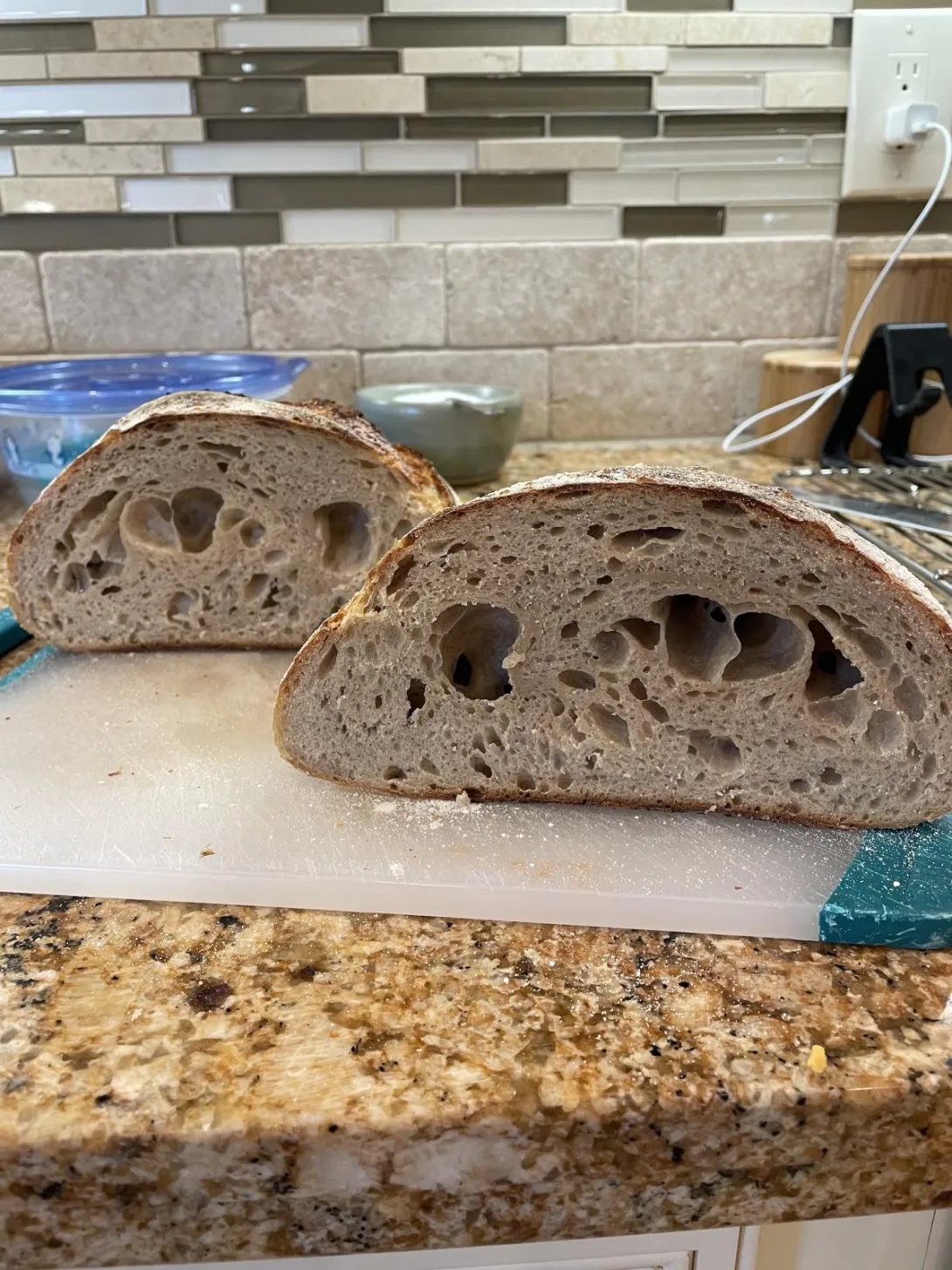 Hi! I'm new to sourdough and have been trying the Tartine Country Bread recipe. I'm hoping I could get advice as to why it is turning out dense and with large holes.