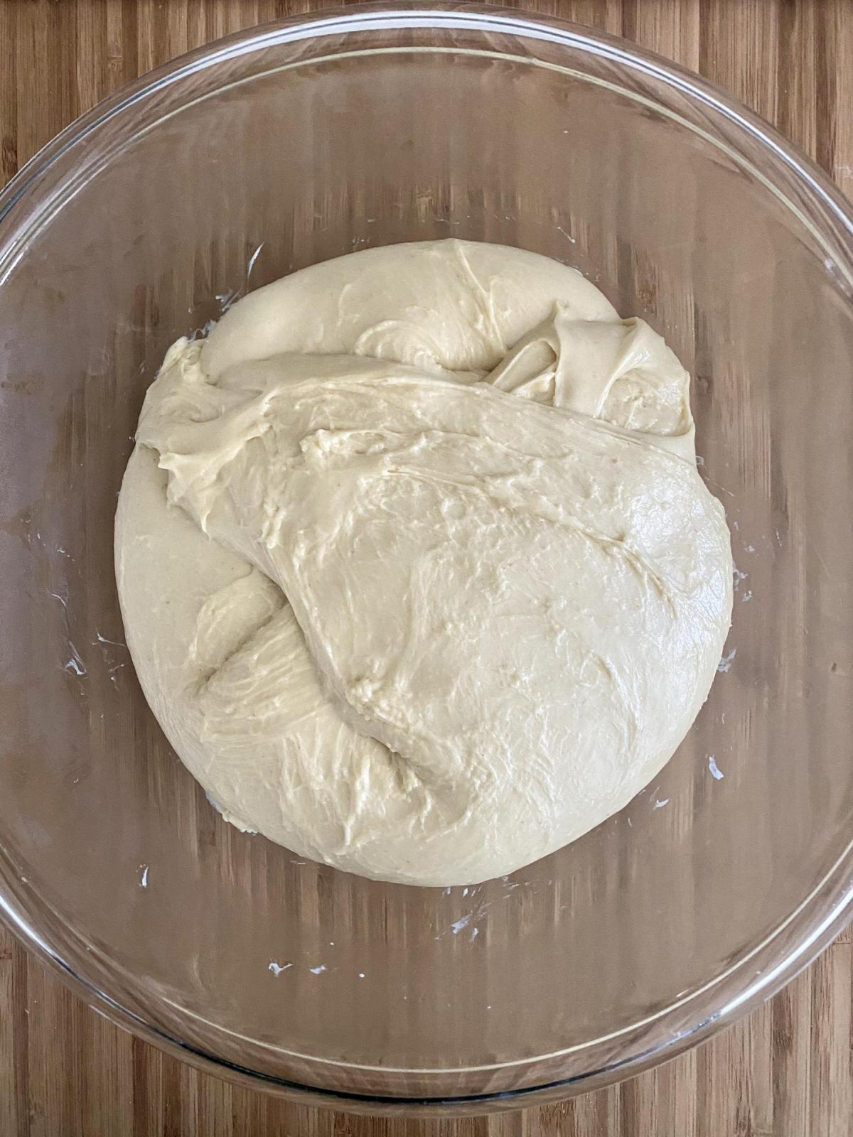 Midway through bulk fermentation - a very forgiving dough, which was easy and fun to work with during shaping.