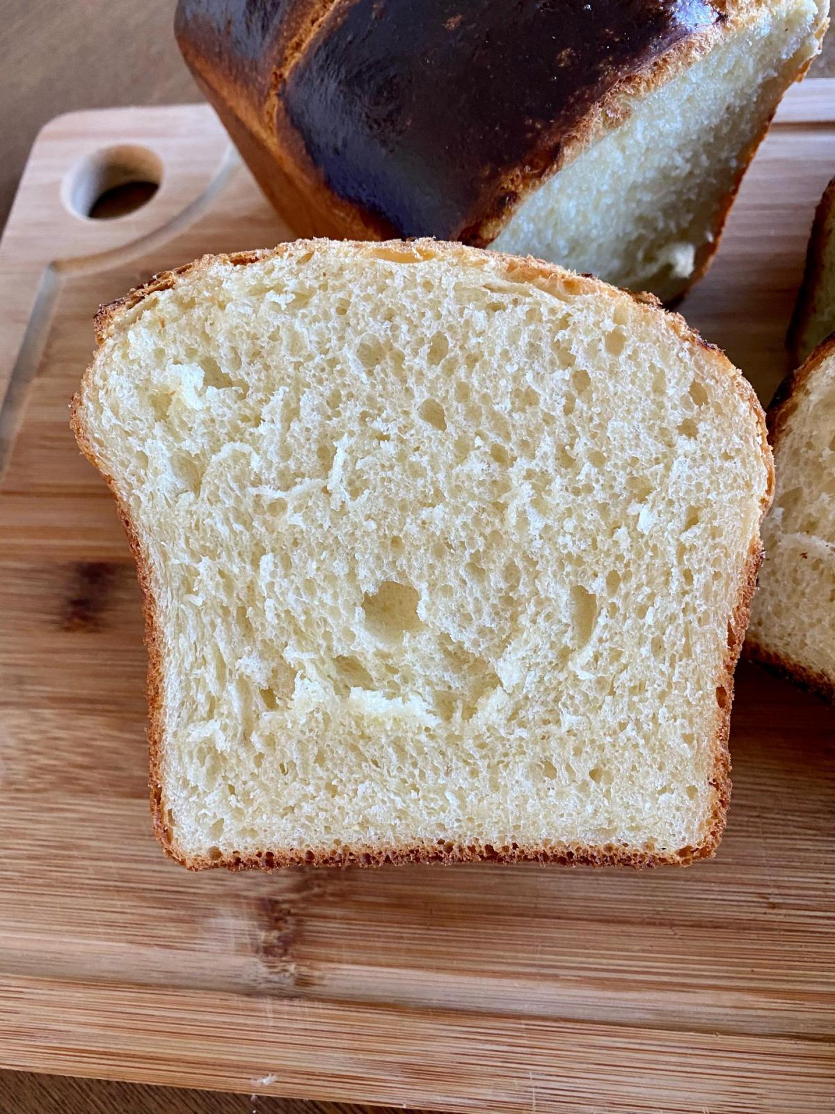 And another close-up of the crumb (and a glimpse of how dark the top of the loaves got).