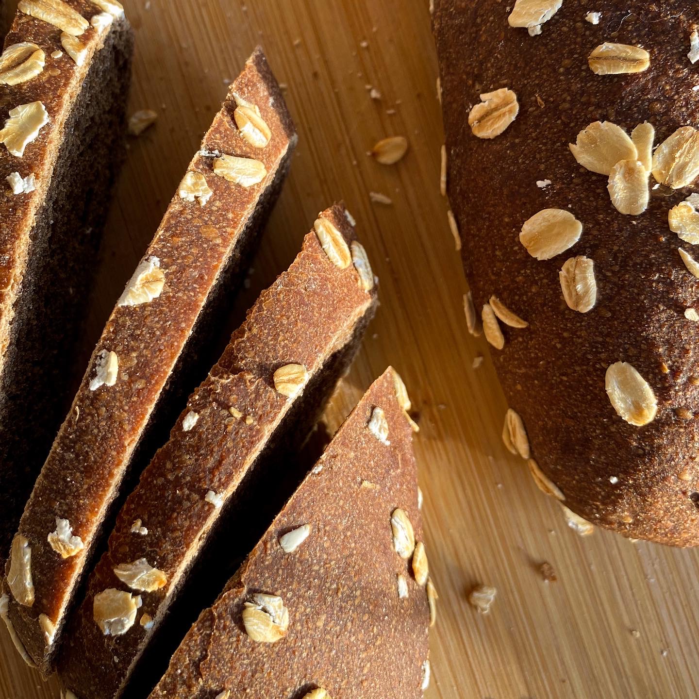 I left to ferment for 8 hours then shape like a baguette then sprinkled with rolled oats and proof for 2 hours.