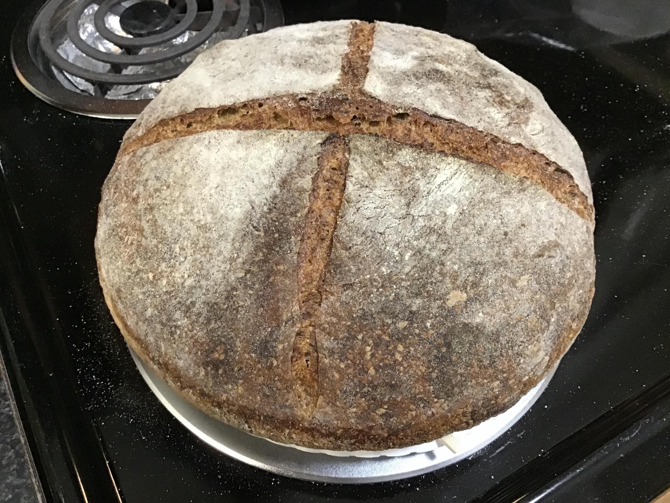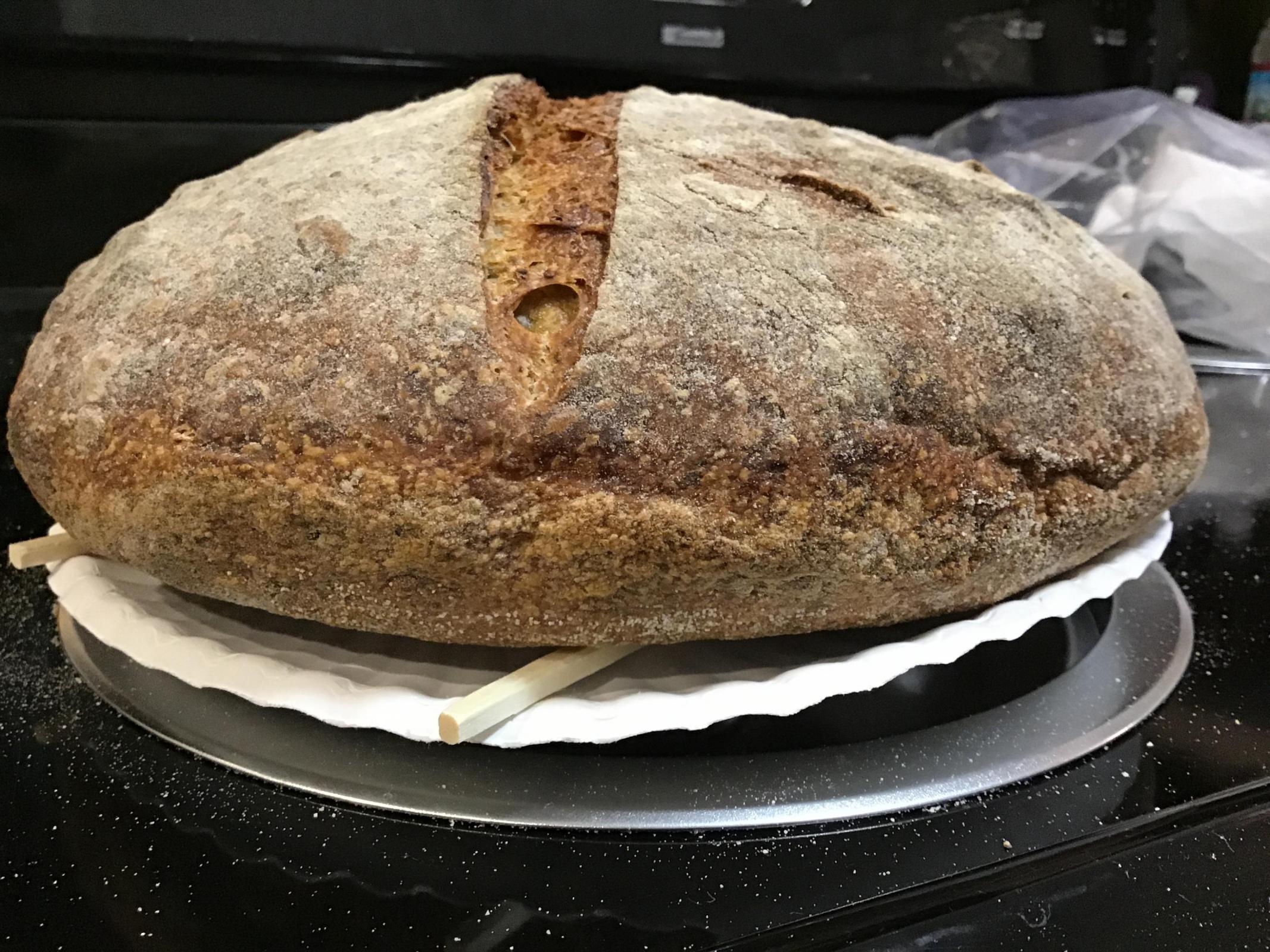 Goals/plan: Use 640 grams of total flour to get a 9" diameter boule, 80% whole wheat durum (Sher Fiber Wala. see: https://weightloss-slim.fit/node/62248/praise-durum-flour-brar-mills%3C/a%3E ), 20% KA bread flour, do a three stage hydration of the durum (add 77% H2O, soak, add 6%, wait, add 6%), 5% chia, 1% nutritional yeast (add after the first soak, with the first 6% water), use sourdough starter -- no commercial yeast.