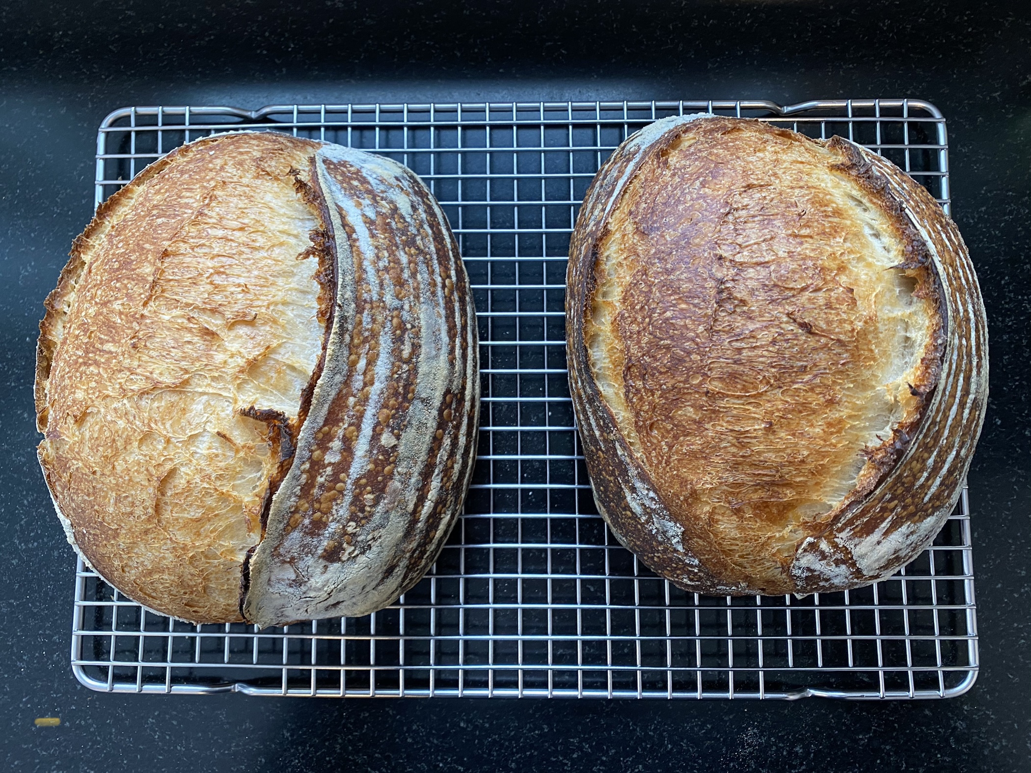 Flours/Hydration: generally a mix of central milling wheat flours (bread and AP) and some fresh milled flour. Hydration in the 75-85% range, depending on the loaf