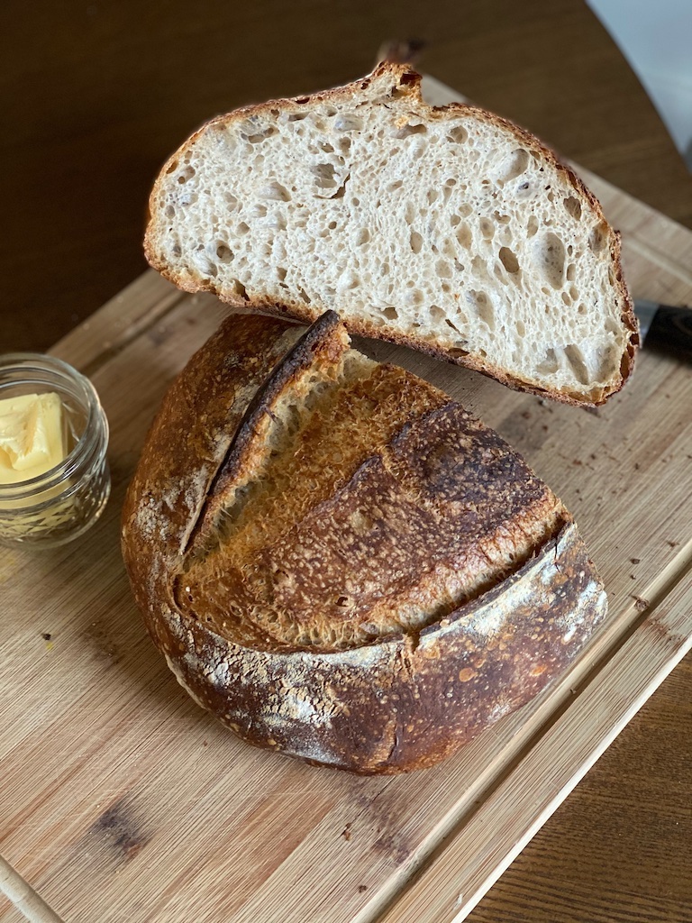 Work has been challenging as of late, so decided to bake a loaf to destress. 78% hydration yielded a delicious loaf. Crumb was a little tighter than I'd like, but happy with the result overall. Log in or register to post comments Lol, one of the few, very few, with a decent crumb. Good to see one every now and then! Enjoy! Log in or register to post comments Thanks so much! :) Log in or register to post comments I agree with everyone about the perfection of the crumb shot... What was your flour mixture. Levain? Log in or register to post comments Thank you thank you! Here it is:450g King Arthur bread flour 50g whole wheat flour 390g water at around 80-85F 10g salt 100g levain, made from a starter fed at 1:1:1 Log in or register to post comments That is one beautiful loaf! Great crust, ear and crumb, well done!Benny Log in or register to post comments Thank you, Benny! Finally achieved a good oven spring :) Log in or register to post comments It adds another interpretation for letting the dough relax to make it easy to work. Log in or register to post comments Thank you! I really take my time when I work on my dough. By the time I shape, the dough is relaxed, fun, and super easy to work with. Log in or register to post comments Really nice bake! And nice to have an outlet for your work stress. Log in or register to post comments Totally. Bread making is so therapeutic for me. Log in or register to post comments Very nice looking loaf with a perfect crumb! Log in or register to post comments Thank you so much for your kind words! Log in or register to post comments